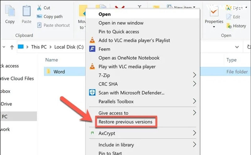 1. Khôi phục file bằng Restore Previous Versions (Phiên bản trước)