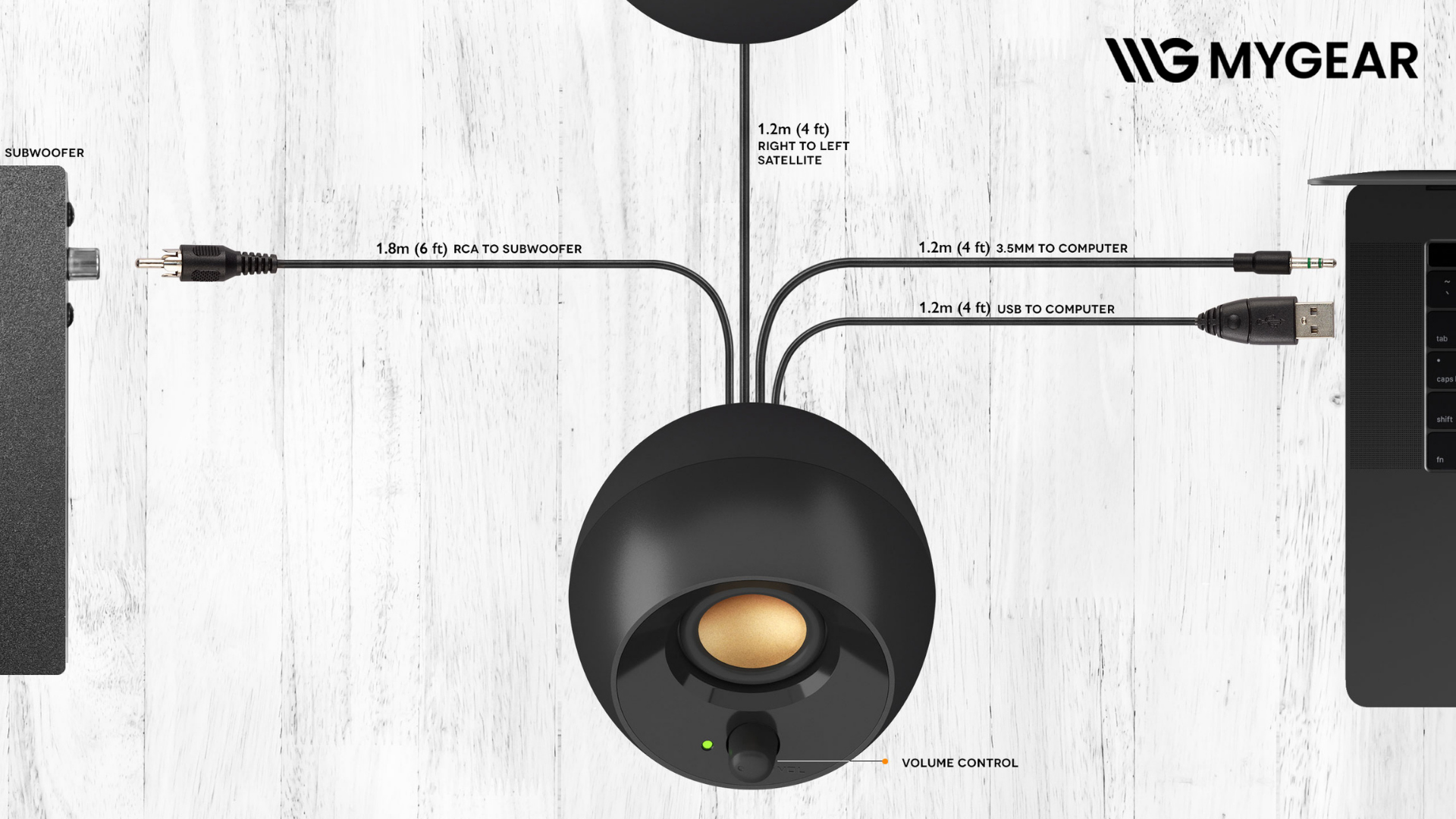 | Khối lượng | Loa trái: 300g | Loa phải: 340g | Subwoofer: 1.05kg |