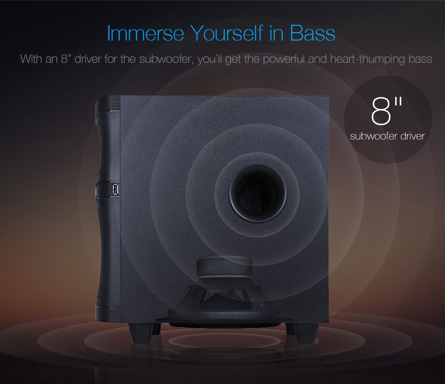 Đặc biệt, loa vi tính có subwoofer này tái hiện âm bass chắc khỏe, lý tưởng cho các dòng nhạc EDM, rock, hoặc khi xem phim bom tấn, giúp người nghe như đang trải nghiệm âm thanh rạp hát ngay tại nhà. Ngoài ra, âm mid và treble cũng được cân bằng tốt, đảm bảo chất lượng tổng thể hài hòa trong mọi thể loại âm nhạc.