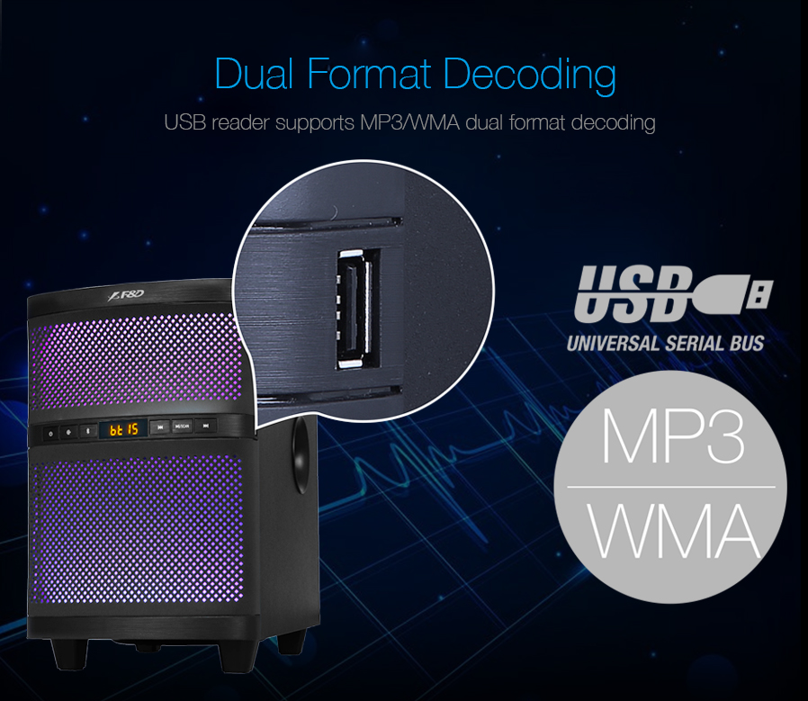 Không đơn thuần là một loa nghe nhạc 70W, Fenda T-220X còn đóng vai trò như một trung tâm giải trí mini. Sản phẩm hỗ trợ phát nhạc từ USB, thẻ nhớ SD, tương thích với nhiều định dạng như MP3, WMA. Điều này rất thuận tiện khi bạn muốn sử dụng loa mà không cần kết nối thiết bị phát. Thêm vào đó, với hệ thống âm thanh 2.1 chân thực, loa phù hợp để xem phim, nghe nhạc, học online, chơi game hoặc sử dụng trong các buổi tụ họp gia đình, party nhỏ.