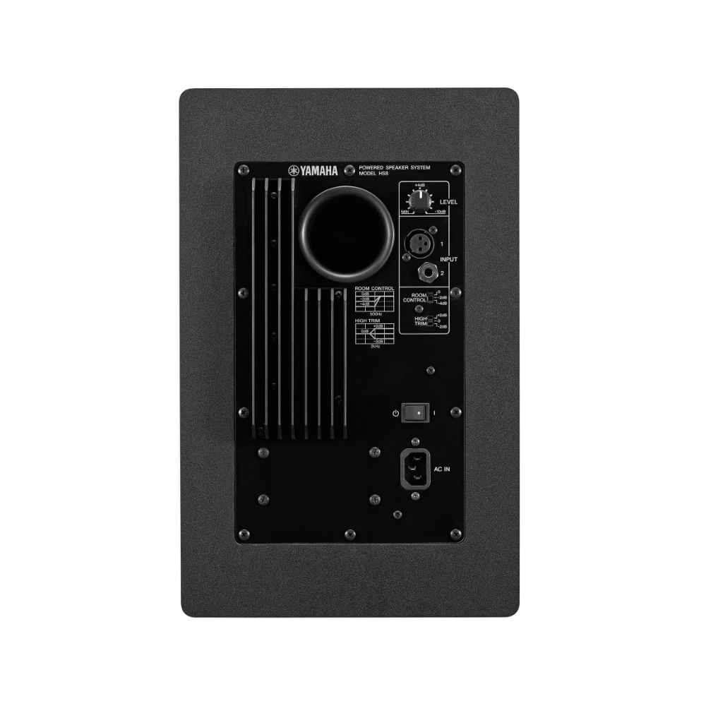 Loa kiểm âm Yamaha HS8 được trang bị các công tắc chỉnh Room Control và High Trim phía sau. Đây là các tính năng cho phép bạn điều chỉnh âm thanh theo đặc tính phòng thu, ví dụ giảm âm trầm bị cộng hưởng khi đặt gần tường hoặc làm dịu dải cao nếu phòng có nhiều phản xạ.