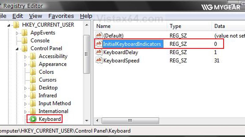 Nếu Num Lock không được giữ mặc định khi khởi động máy, bạn có thể chỉnh sửa giá trị InitialKeyboardIndicators trong Registry: