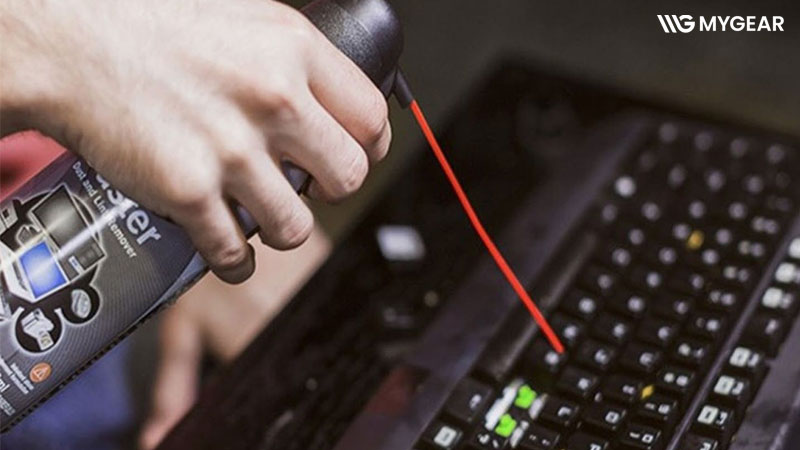 - Dùng bình khí nén để thổi bụi khỏi khe phím.