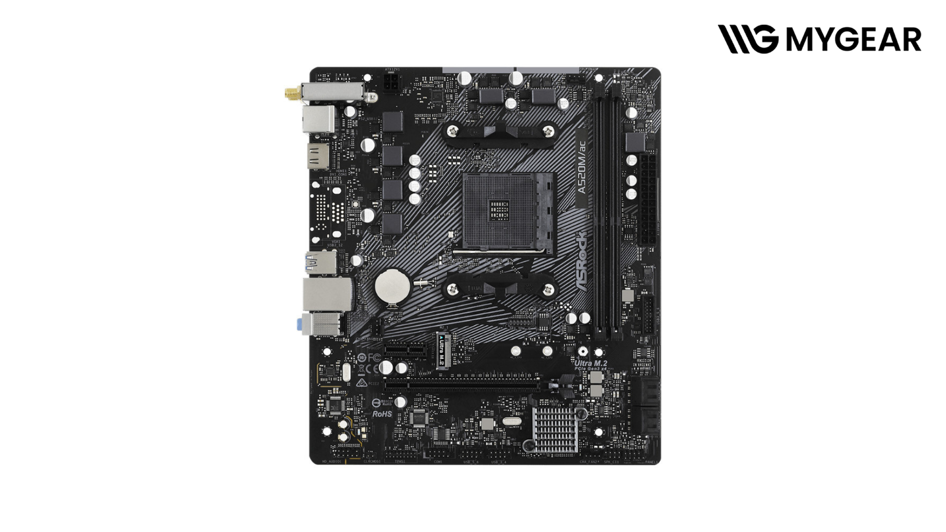 Với kích thước 23.0 × 20.1 cm, mainboard ASRock A520M AC WiFi phù hợp với nhiều case Micro-ATX, giúp tối ưu không gian nhưng vẫn đầy đủ tính năng.