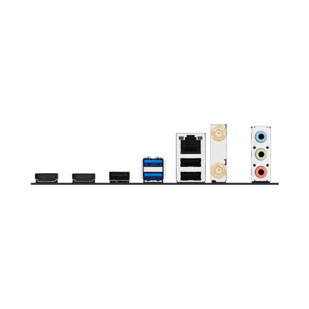 | Cổng I/O sau | 2×USB 3.2 Gen1, 3×USB 2.0, 2×HDMI, LAN, Wi-Fi, 3×Audio jack |