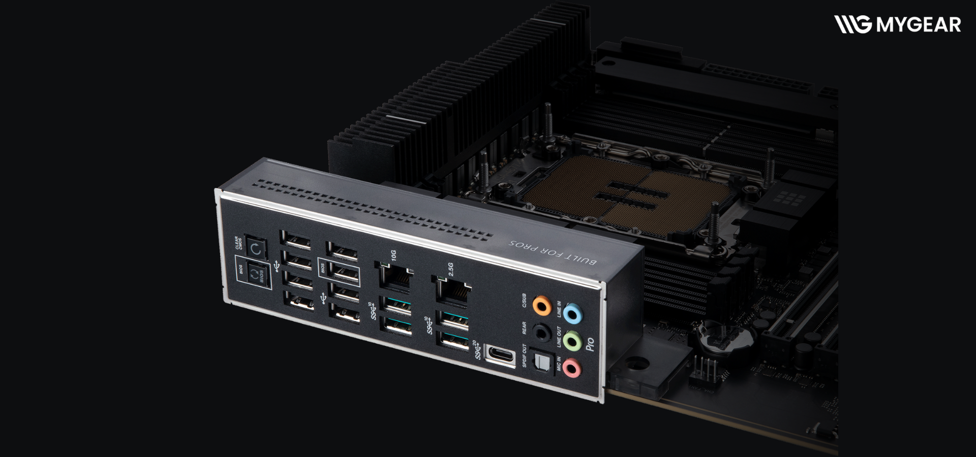 Mainboard ASUS Pro WS W790-ACE có 2 cổng LAN Intel 10GbE và 2.5GbE, hỗ trợ tốc độ truyền dữ liệu siêu nhanh, tối ưu cho NAS, server hoặc hệ thống render farm nội bộ.