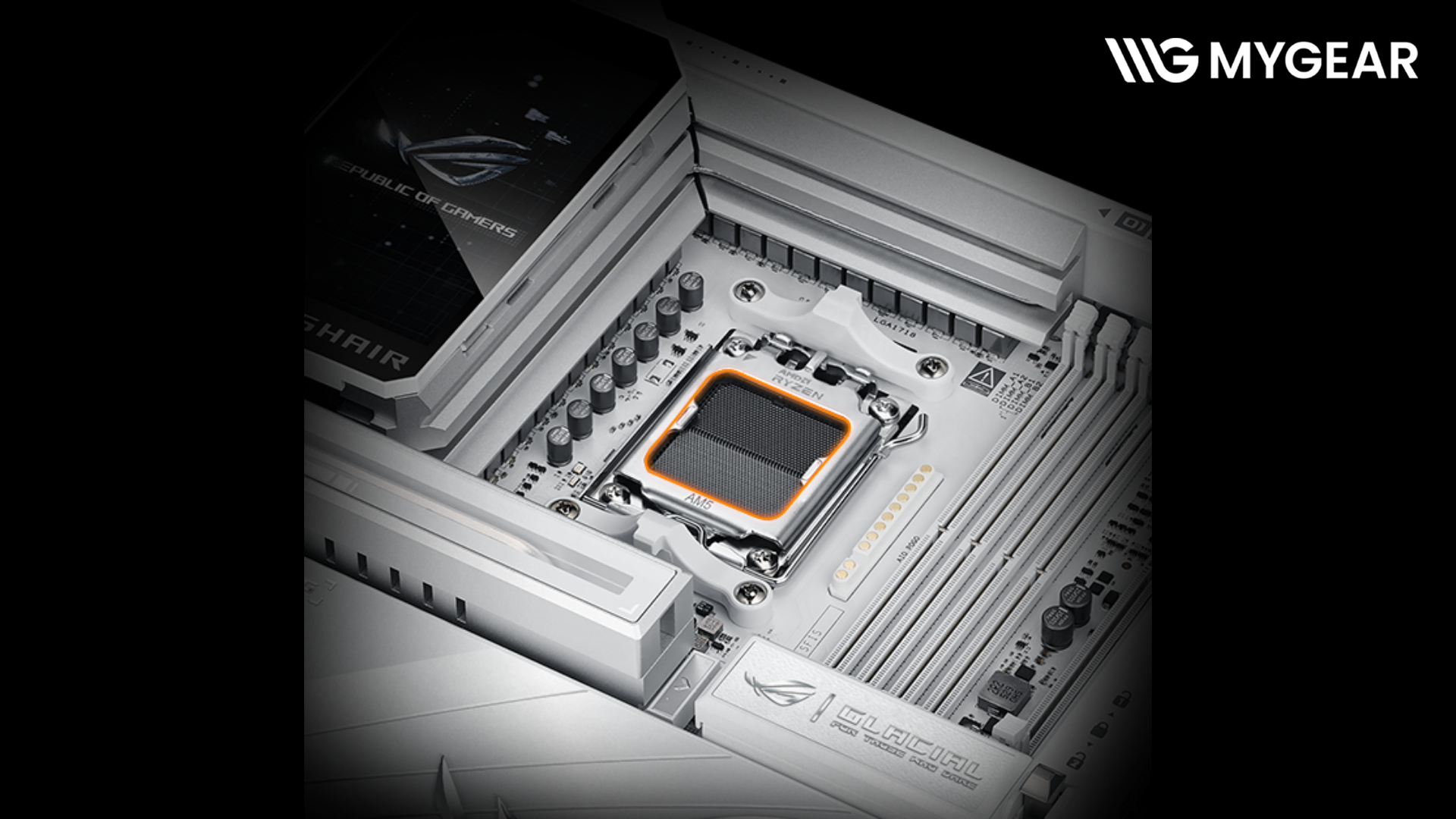 Khi kết hợp cùng CPU AMD Ryzen 7, Ryzen 9, RAM DDR5 32GB–128GB, SSD M.2 PCIe 5.0, card đồ họa RTX hoặc Radeon cao cấp, nguồn công suất 850W–1200W, tản nhiệt nước AIO hoặc custom loop, case ATX cao cấp và các linh kiện khác hiện đang có tại MYGEAR, ASUS ROG CROSSHAIR X870E GLACIAL mang đến một cấu hình AMD đỉnh cao, sẵn sàng chinh phục mọi nhu cầu từ gaming đến sáng tạo chuyên nghiệp.