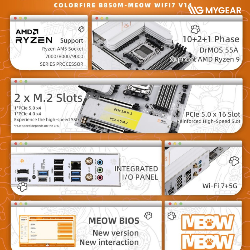 | Model | COLORFIRE B850M-MEOW WIFI7 V14 |