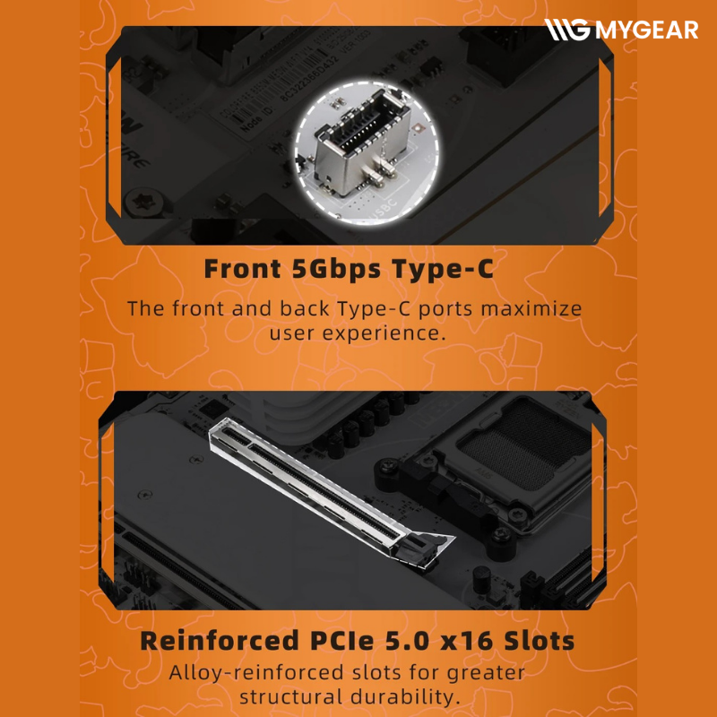 Một điểm đáng giá của Colorful Meow B850M là việc trang bị 1 khe PCIe 5.0 M.2 cùng 1 khe PCIe 4.0 M.2, cho phép người dùng lắp SSD tốc độ cao thế hệ mới. Với PCIe 5.0 M.2, thời gian tải hệ điều hành, game và phần mềm nặng được rút ngắn đáng kể, mang lại trải nghiệm mượt mà trong mọi tác vụ.
