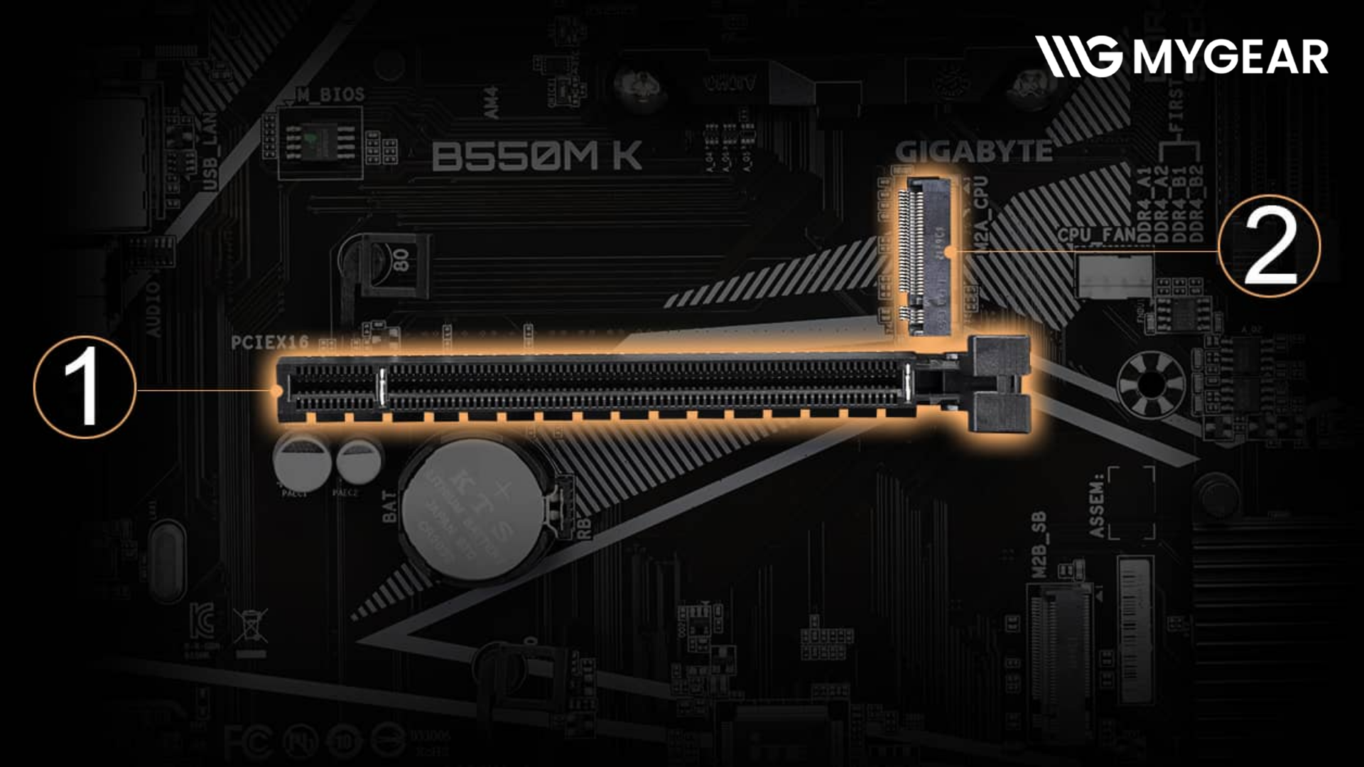 Mainboard GIGABYTE B550M K được trang bị chipset AMD B550 giúp tối ưu hiệu năng hệ thống và hỗ trợ PCIe 4.0 khi kết hợp cùng CPU tương thích. Khe cắm đồ họa PCIe 4.0/3.0 x16 mang lại khả năng tương thích với GPU hiện đại, trong khi một khe PCIe 3.0 x1 cho mở rộng thêm các thiết bị khác.