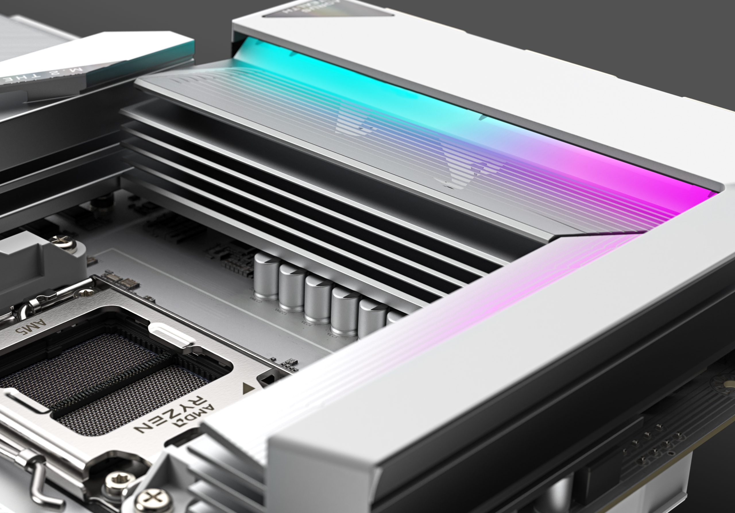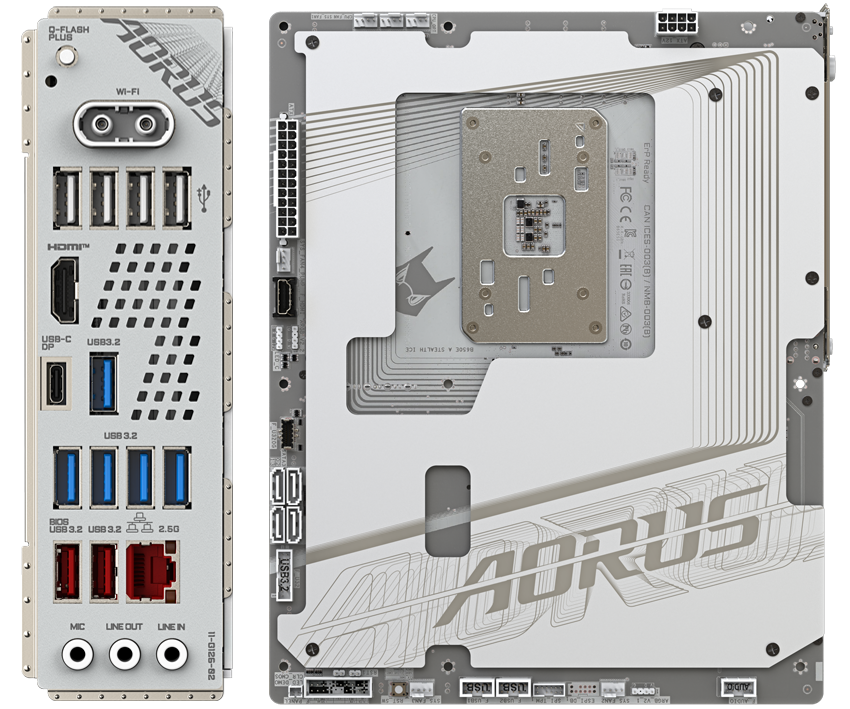 Khác biệt hoàn toàn với các mainboard thông thường, mainboard Gigabyte B650E AORUS STEALTH ICE sở hữu thiết kế đặc biệt Stealth với toàn bộ chân cắm nguồn, cổng SATA và đầu nối quạt được bố trí mặt sau. Điều này giúp hệ thống của bạn cực kỳ sạch sẽ, tối ưu airflow và dễ dàng đi dây, một giấc mơ cho mọi builder chuyên nghiệp.
