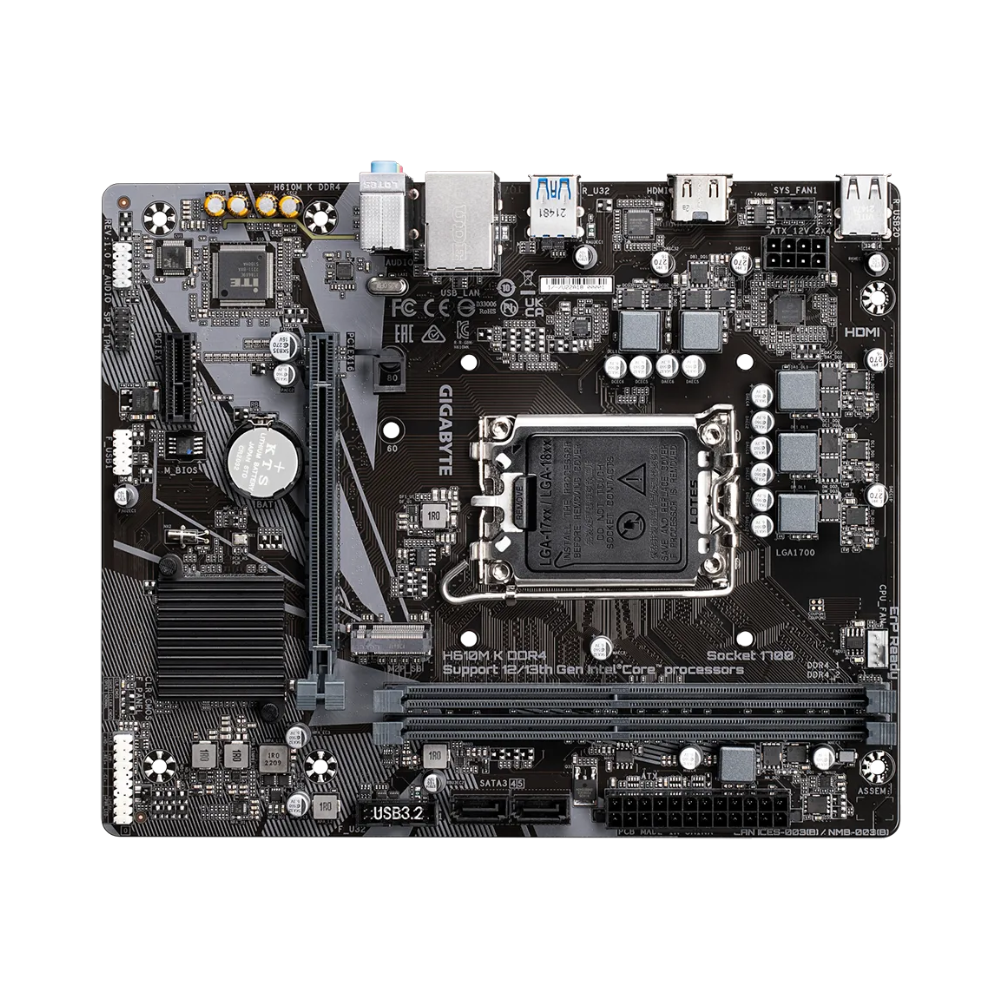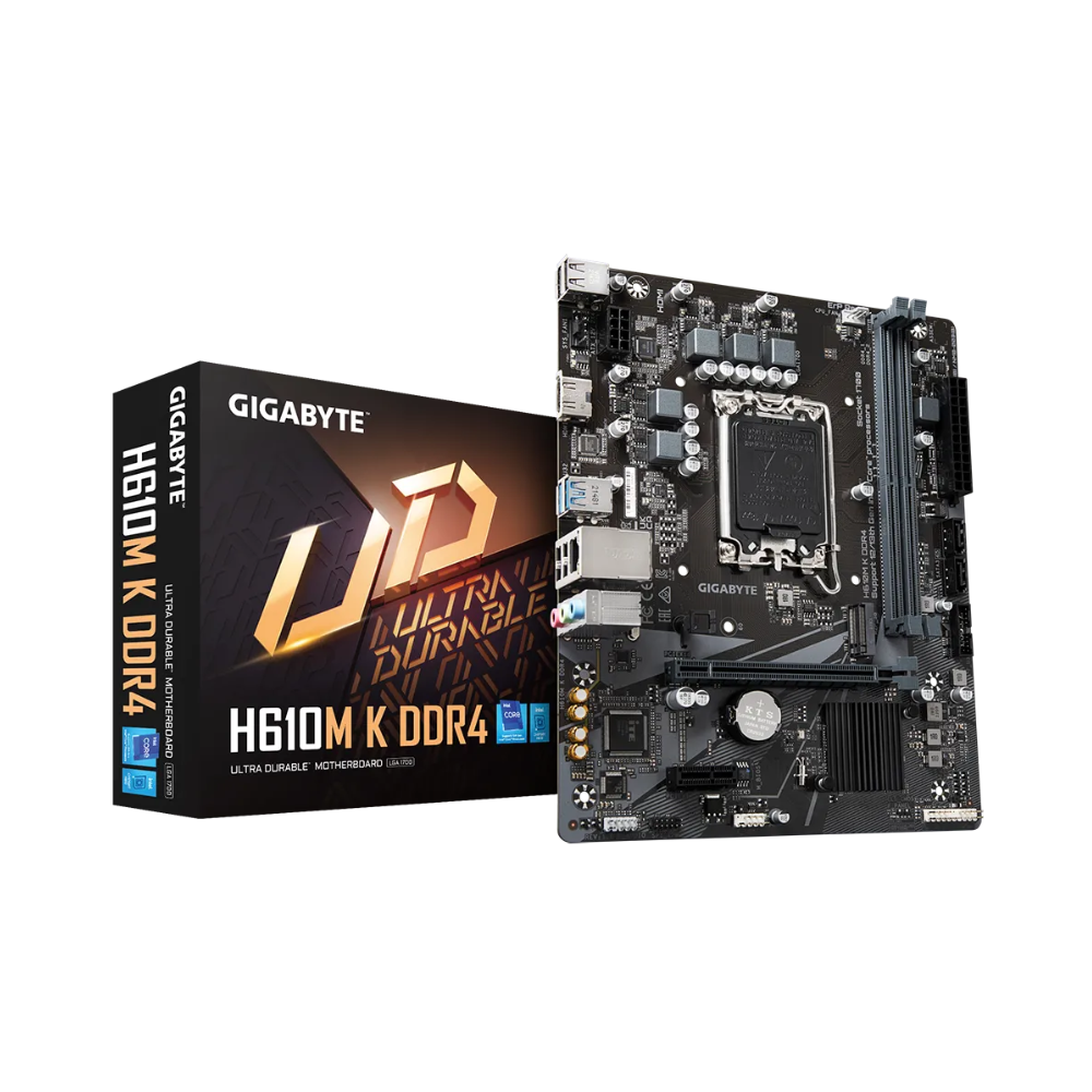 Mainboard Gigabyte H610M K DDR4 (rev. 1.0) là giải pháp hoàn hảo cho người dùng cần một bo mạch chủ Gigabyte H610M K ổn định, tiết kiệm chi phí nhưng vẫn hỗ trợ các công nghệ cần thiết như PCIe Gen4 và M.2 NVMe. Với thiết kế nhỏ gọn, linh kiện bền bỉ và khả năng tương thích cao, sản phẩm rất phù hợp cho PC văn phòng, học tập và gaming cơ bản.