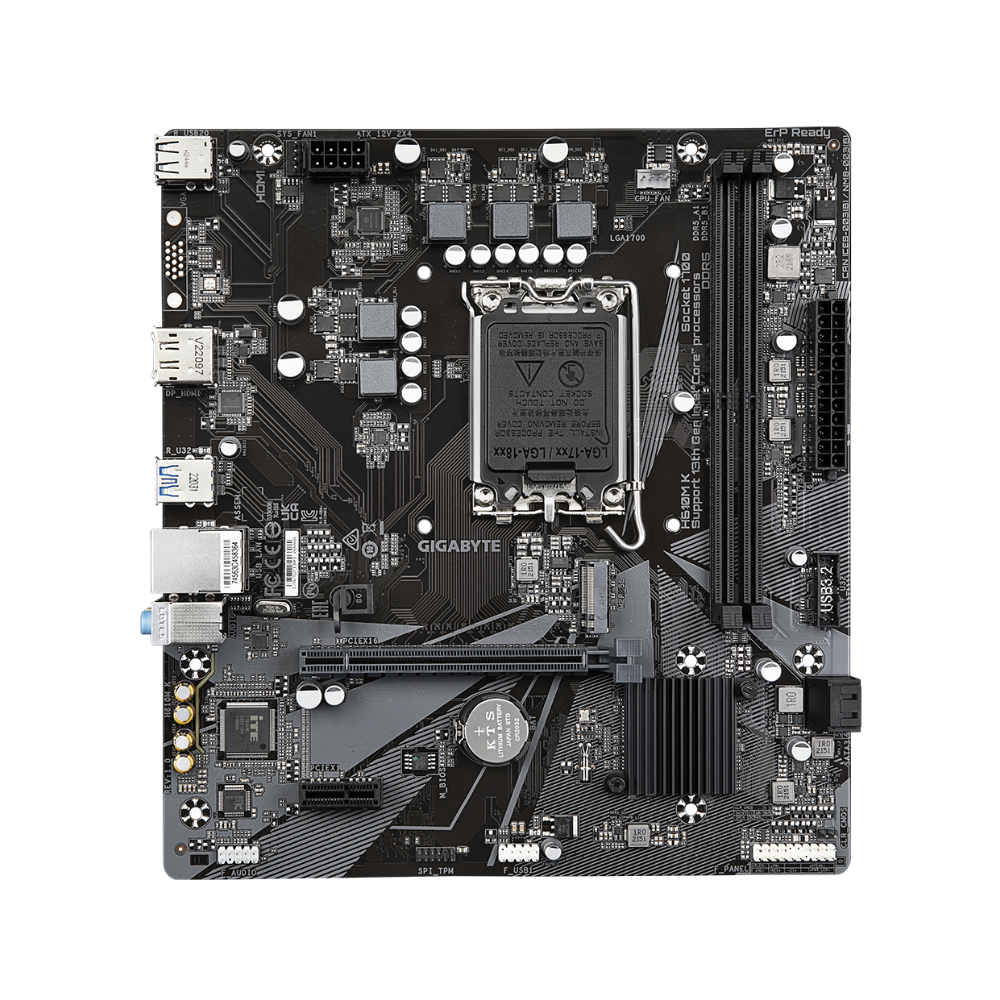 Sử dụng chipset Intel H610, bo mạch chủ Gigabyte H610M K DDR5 hỗ trợ đầy đủ các CPU Intel Core i3, i5, i7, i9 thế hệ 12/13/14 (socket LGA1700). Chipset H610 được tối ưu cho hiệu năng cân bằng giữa sức mạnh và tiết kiệm chi phí, lý tưởng cho người dùng phổ thông hoặc doanh nghiệp cần một hệ thống PC ổn định, dễ nâng cấp.
