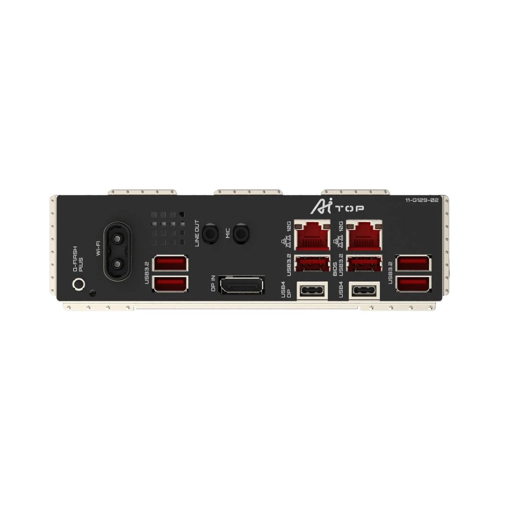 | Cổng kết nối phía sau | 1x Q-Flash Plus, 2x SMA antenna, 1x DisplayPort In, 2x USB4® Type-C®, 6x USB 3.2 Gen 2 Type-A, 2x RJ-45, 2x audio jacks |
