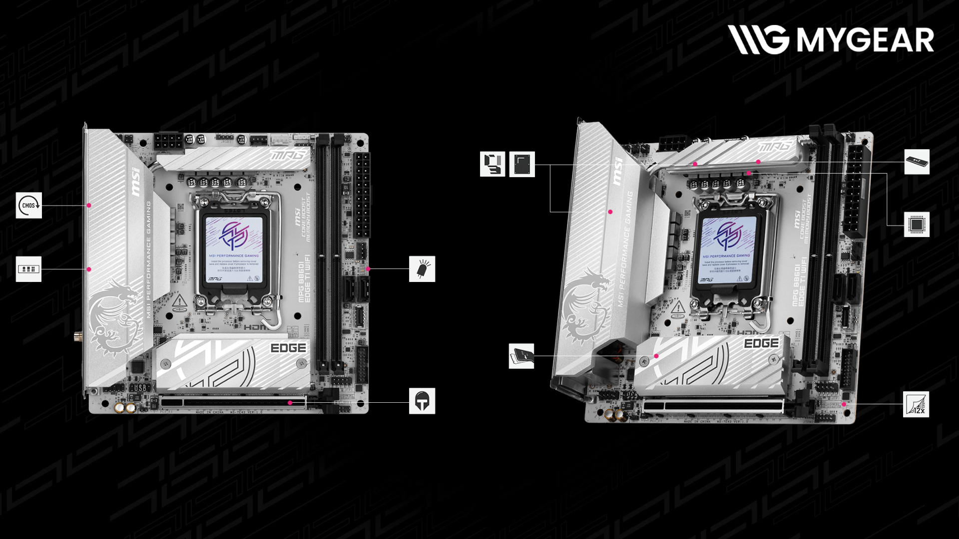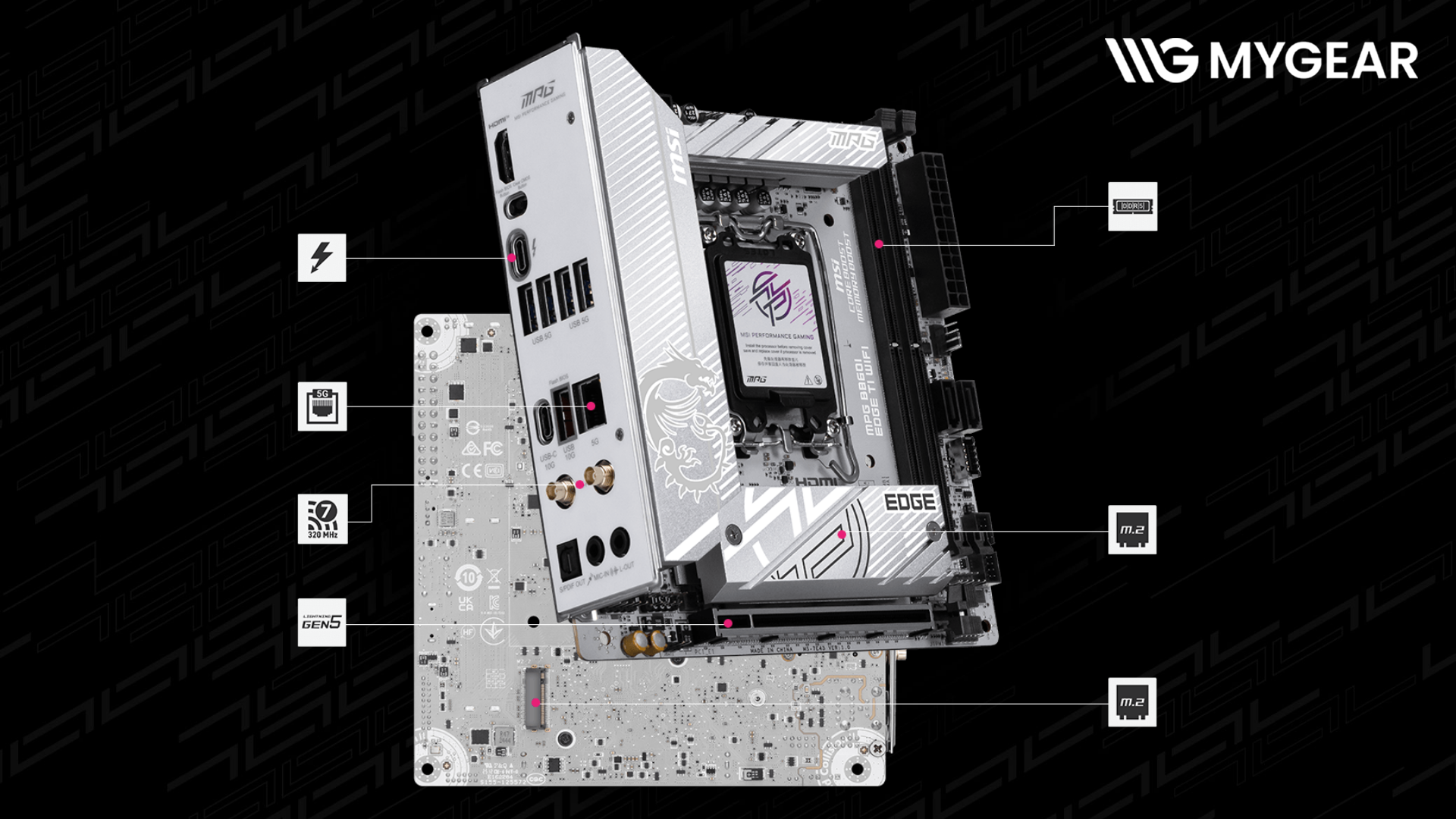 Khi kết hợp cùng CPU Intel Core Ultra Series 2, RAM DDR5, SSD M.2 PCIe 5.0, card màn hình PCIe 5.0, nguồn máy tính, vỏ case Mini-ITX, tản nhiệt CPU và các linh kiện PC MSI đang có tại MYGEAR, MSI MPG B860I EDGE TI WIFI tạo nên một hệ thống nhỏ gọn nhưng mạnh mẽ, thẩm mỹ cao và sẵn sàng cho công nghệ tương lai.