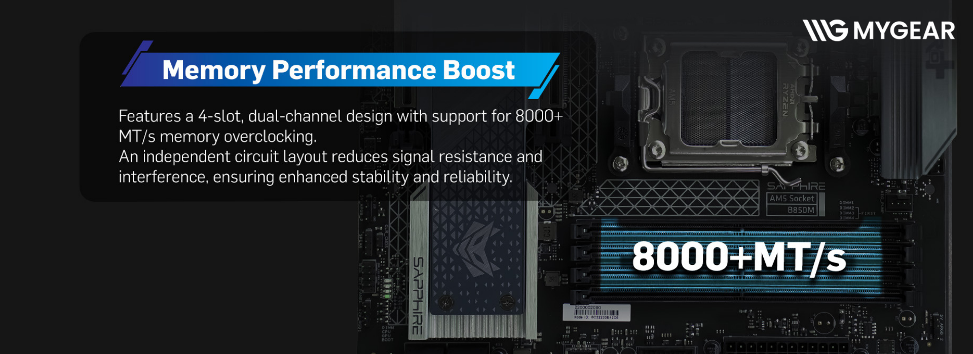 Với chipset AMD B850, hỗ trợ RAM DDR5 và khả năng tương thích socket AM5, đây là bo mạch chủ Sapphire B850M lý tưởng để xây dựng dàn máy tối ưu cho CPU Ryzen 7000 và đặc biệt là Ryzen 9000 mới nhất.