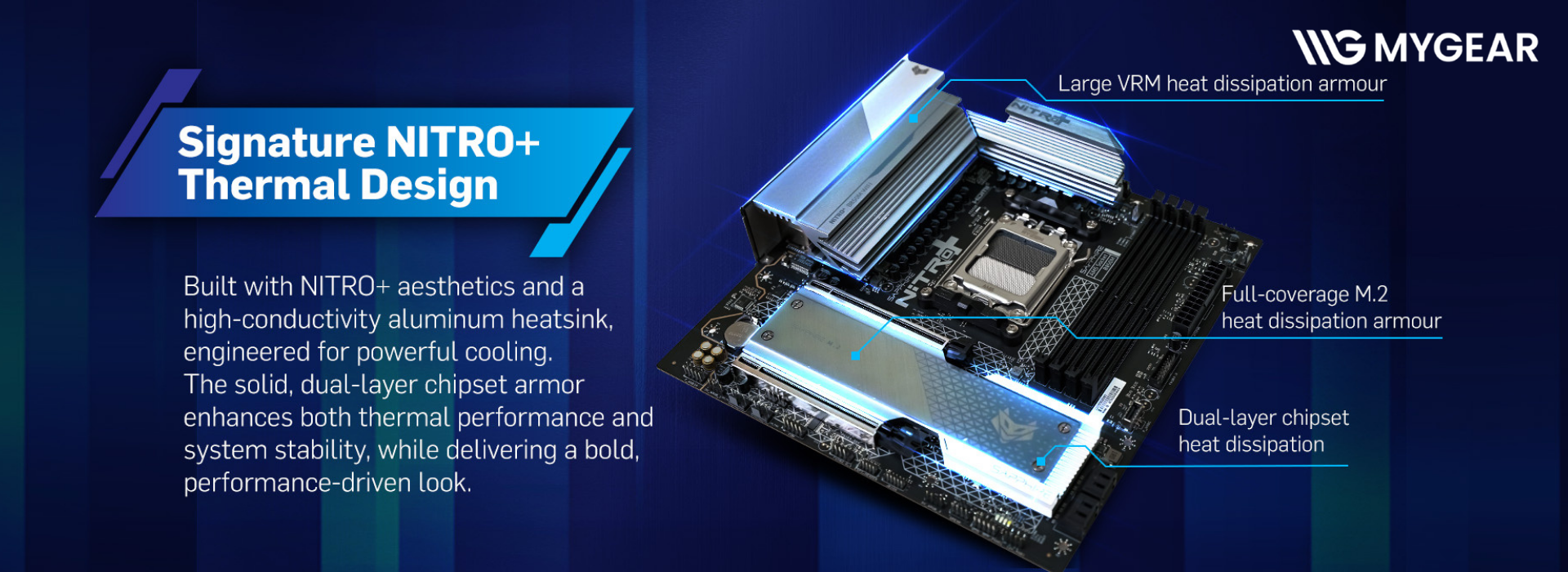Dù là bản Micro-ATX, Mainboard Sapphire NITRO+ B850M WIFI DDR5 vẫn sở hữu hệ thống heatsink cỡ lớn bao phủ VRM và khe M.2, giúp duy trì nhiệt độ ổn định khi hoạt động cường độ cao. Điều này đặc biệt quan trọng cho game thủ và người dùng chuyên nghiệp.