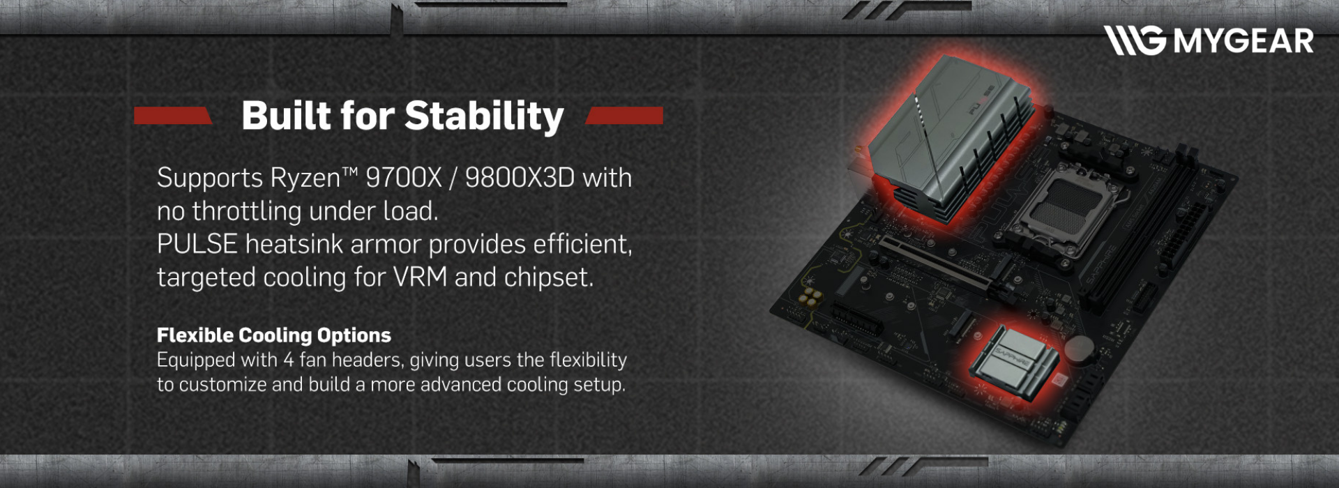 Bo mạch chủ Sapphire PULSE được trang bị tụ điện chất lượng cao, mạch VRM ổn định, tản nhiệt cơ bản cho khu vực MOSFET nhằm đảm bảo hệ thống vận hành mát mẻ, ổn định ngay cả khi hoạt động liên tục.