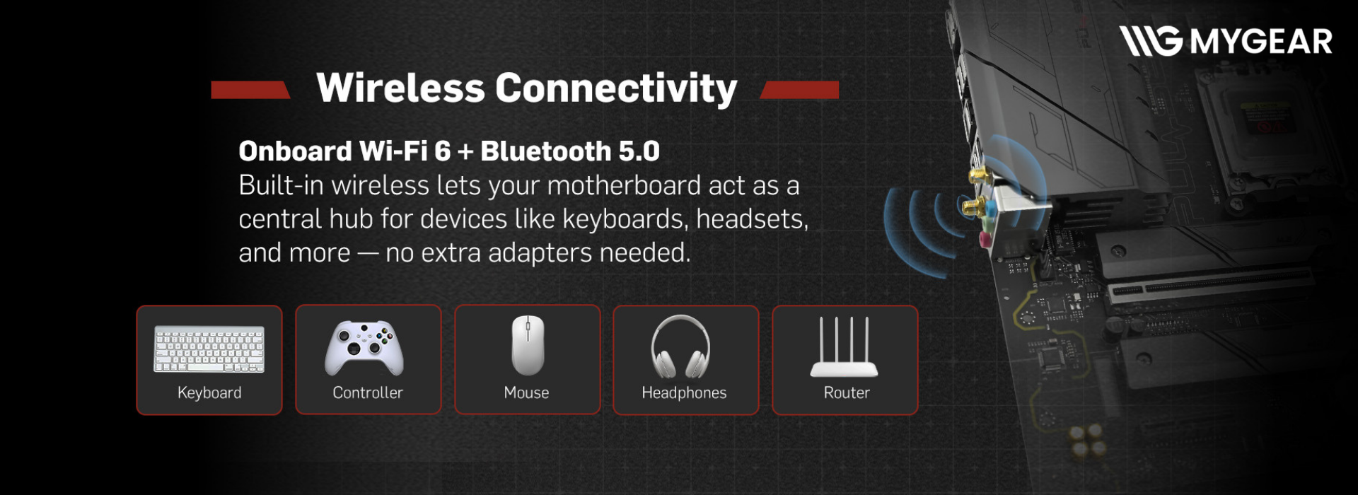 Với mainboard Sapphire PULSE B850M WIFI, bạn có thể tận hưởng tốc độ mạng không dây WiFi 6 ổn định và Bluetooth 5.3 tích hợp sẵn, giảm độ trễ khi chơi game online. Ngoài ra, cổng LAN 2.5GbE giúp truyền tải dữ liệu cực nhanh trong mạng nội bộ, hỗ trợ stream hoặc chia sẻ file dung lượng lớn.