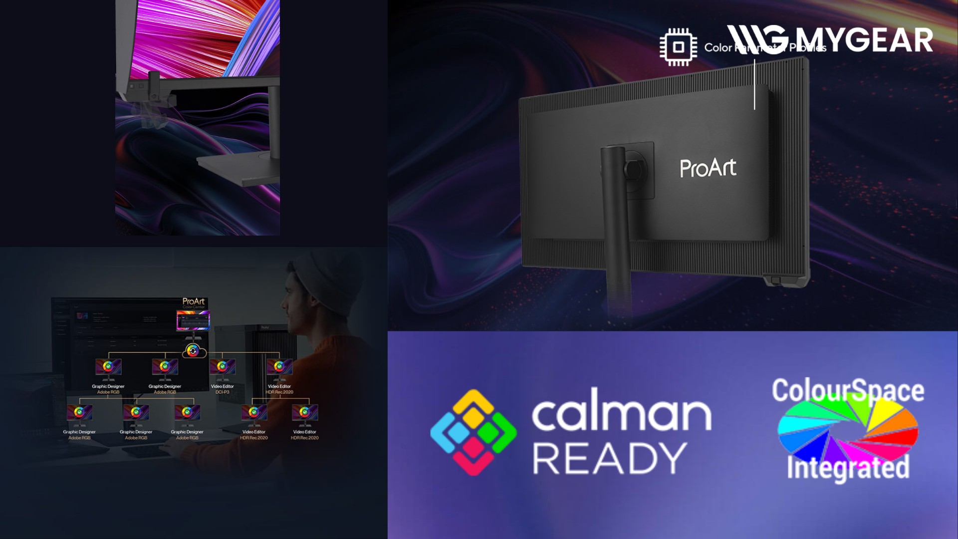 Một trong những điểm nổi bật nhất của ProArt Display 8K là việc tích hợp Colorimeter ngay bên trong màn hình. Nhờ đó, màn hình 8K chuyên dụng có thể tự động đo và cân chỉnh màu mà không cần thiết bị bên ngoài. Kết hợp với ASUS ProArt Hardware Calibration và khả năng Calman Ready, ASUS ProArt PA32KCX đảm bảo độ chính xác màu ổn định lâu dài, đặc biệt quan trọng với các studio chuyên nghiệp.