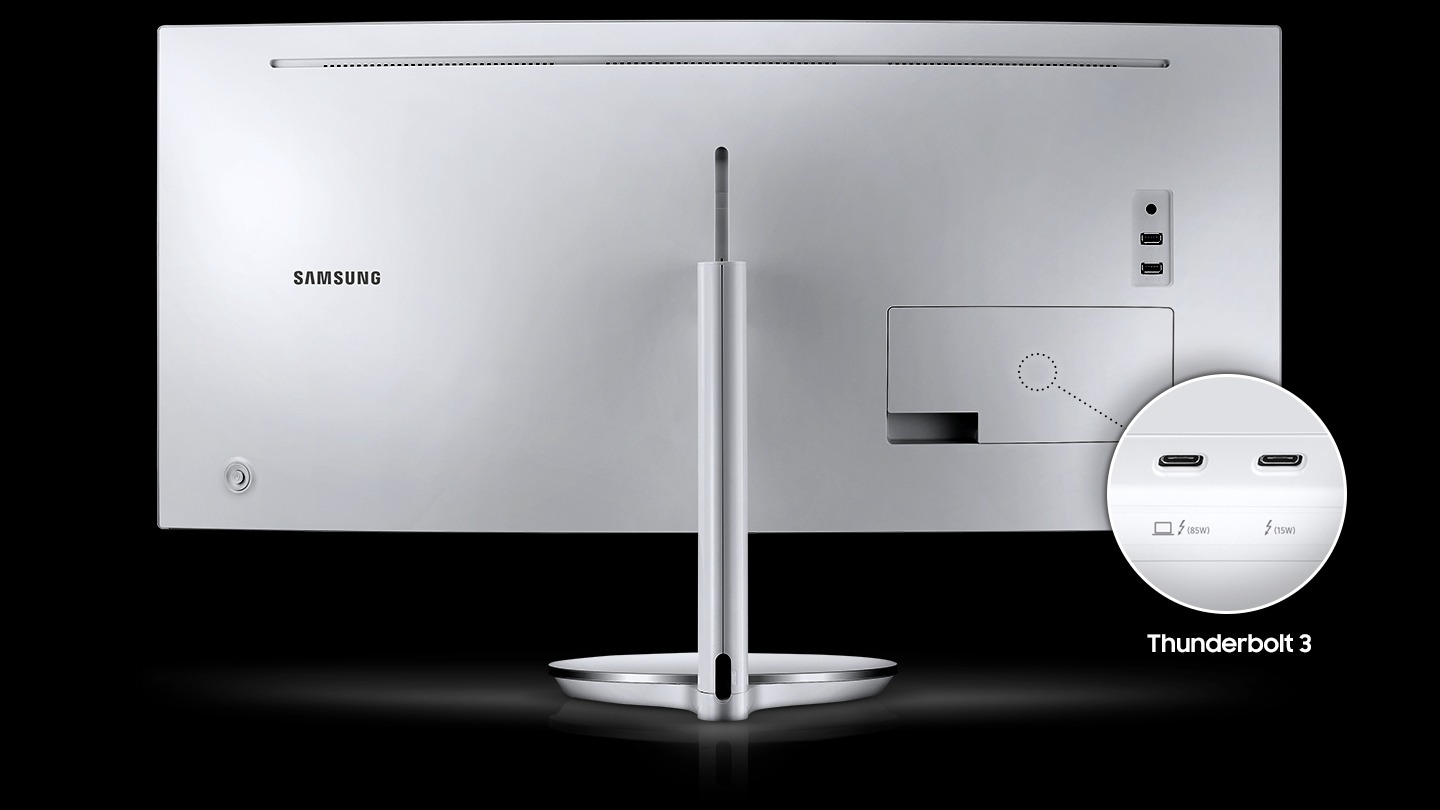 Samsung QLED LC34J791WTEXXV được trang bị các cổng kết nối đa dạng như Display Port, HDMI, Type-C và Thunderbolt 3, giúp người dùng dễ dàng kết nối với nhiều thiết bị khác nhau như máy tính, laptop, điện thoại hay máy tính bảng.
