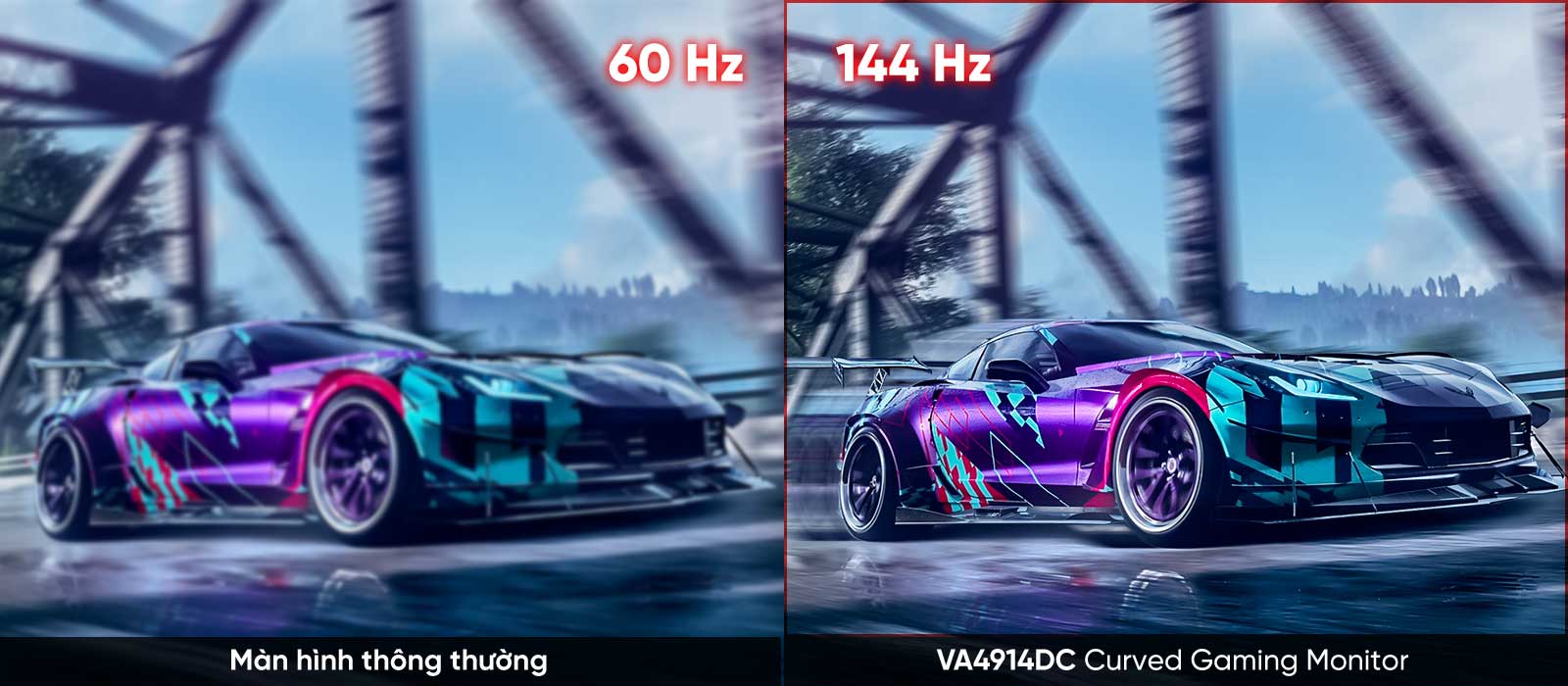 Trải nghiệm trò chơi cực kỳ mượt mà và chân thực với tần số quét 144Hz, không chỉ giảm thiểu độ trễ của hình ảnh mà còn chống rung mờ khi chơi game di chuyển với tốc độ nhanh.