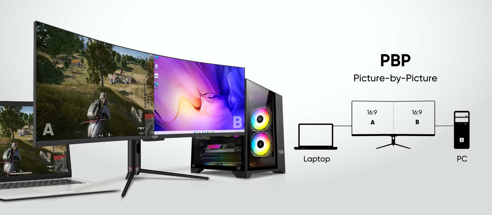 Picture-in-Picture (PIP) và Picture-by-Picture (PBP): là chức năng cho phép bạn xem nội dung từ nhiều nguồn tín hiệu đầu vào (PC, Laptop...) cùng một lúc và dễ dàng chuyển đổi, giúp bạn xử lý nhiều thông tin một cách nhanh hơn và đa nhiệm hơn trong việc xử lý đồ họa hoặc video.
