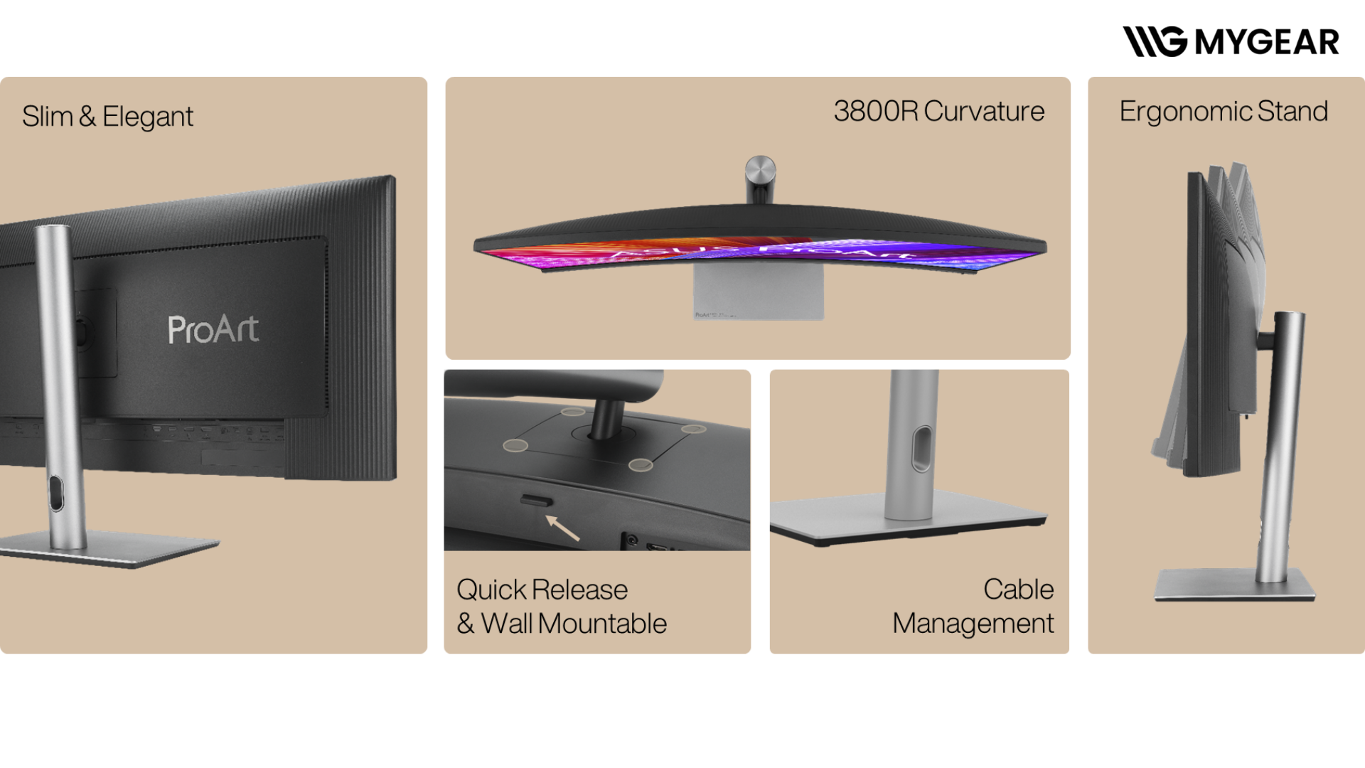 Không chỉ nổi bật với thiết kế màn hình cong, ProArt Display 34 inch IPS HDR10 còn được ASUS tối ưu để phục vụ các công việc chuyên đồ họa, đảm bảo tái hiện màu sắc chuẩn xác và độ ổn định hình ảnh cao. Đây là chiếc màn hình cong 34 inch đồ họa ASUS lý tưởng để tạo nên không gian làm việc chuyên nghiệp, đồng thời hỗ trợ tối đa cho nhu cầu sáng tạo.
