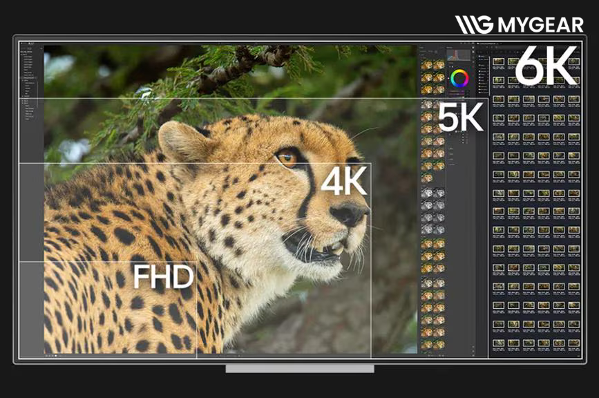 Với độ phân giải 6K (6016 x 3384), màn hình LG UltraFine evo 32U990A-S hiển thị hình ảnh với chi tiết cực kỳ tinh tế, gấp hơn 2 lần so với 4K UHD. Dù là chỉnh sửa ảnh RAW, dựng video 8K hay thiết kế 3D phức tạp, màn hình 6K đều đảm bảo độ sắc nét, độ chính xác màu và không gian hiển thị lớn, giúp bạn kiểm soát từng chi tiết nhỏ nhất trong tác phẩm của mình.