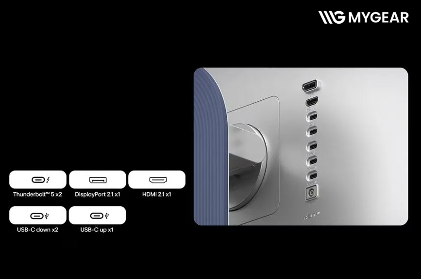| Cổng kết nối | 1×Thunderbolt 5 (PD 96W), 1×DisplayPort 2.1, 1×HDMI 2.1, 1×USB-C Up, 2×USB-C Down (USB 3.2 Gen2) |