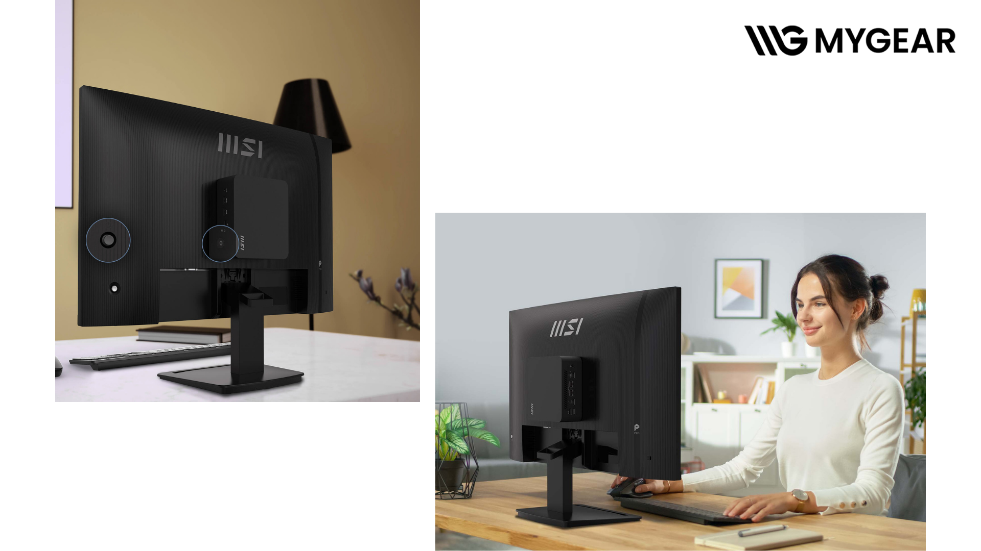 Một ưu điểm đáng chú ý của MSI PRO MP273 E14A monitor là hệ thống loa tích hợp 2 × 3W. Người dùng có thể nghe nhạc, xem video hoặc họp online mà không cần sử dụng loa ngoài. Với thiết kế loa tích hợp, màn hình MSI có loa giúp bàn làm việc gọn gàng hơn, đặc biệt phù hợp cho không gian văn phòng hoặc setup tối giản.