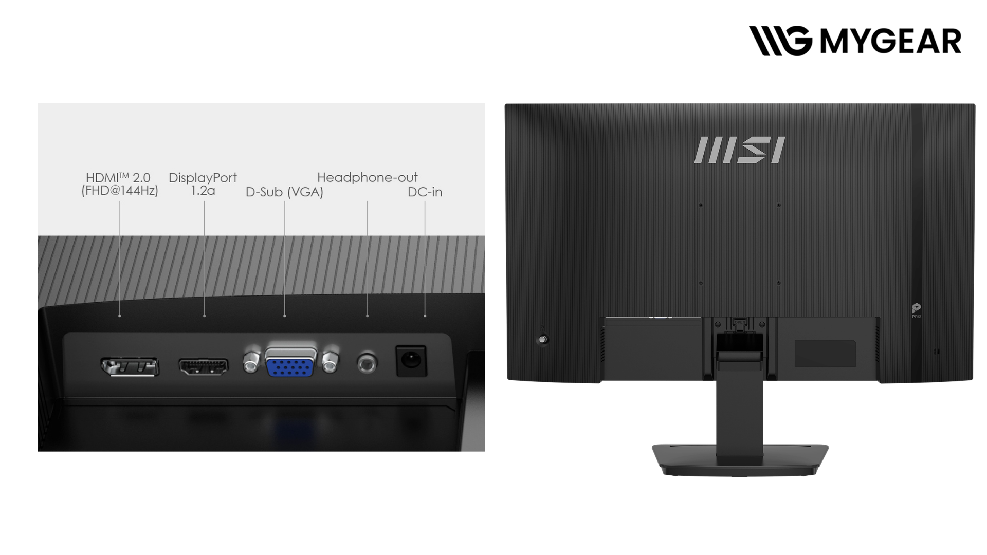 | Cổng kết nối | 1x HDMI 2.0 (FHD 144Hz), 1x DisplayPort 1.2a, 1x D-Sub (VGA), 1x Headphone-out |