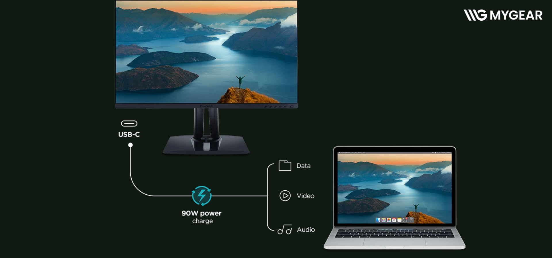 Trang bị cổng USB-C hỗ trợ Power Delivery 90W, màn hình ViewSonic VP2756A-2K cho phép sạc nhanh laptop, truyền dữ liệu và tín hiệu hình ảnh chỉ với một dây cáp duy nhất. Bên cạnh đó, sản phẩm còn tích hợp các cổng HDMI, DisplayPort và USB Hub, giúp dễ dàng kết nối với nhiều thiết bị ngoại vi.