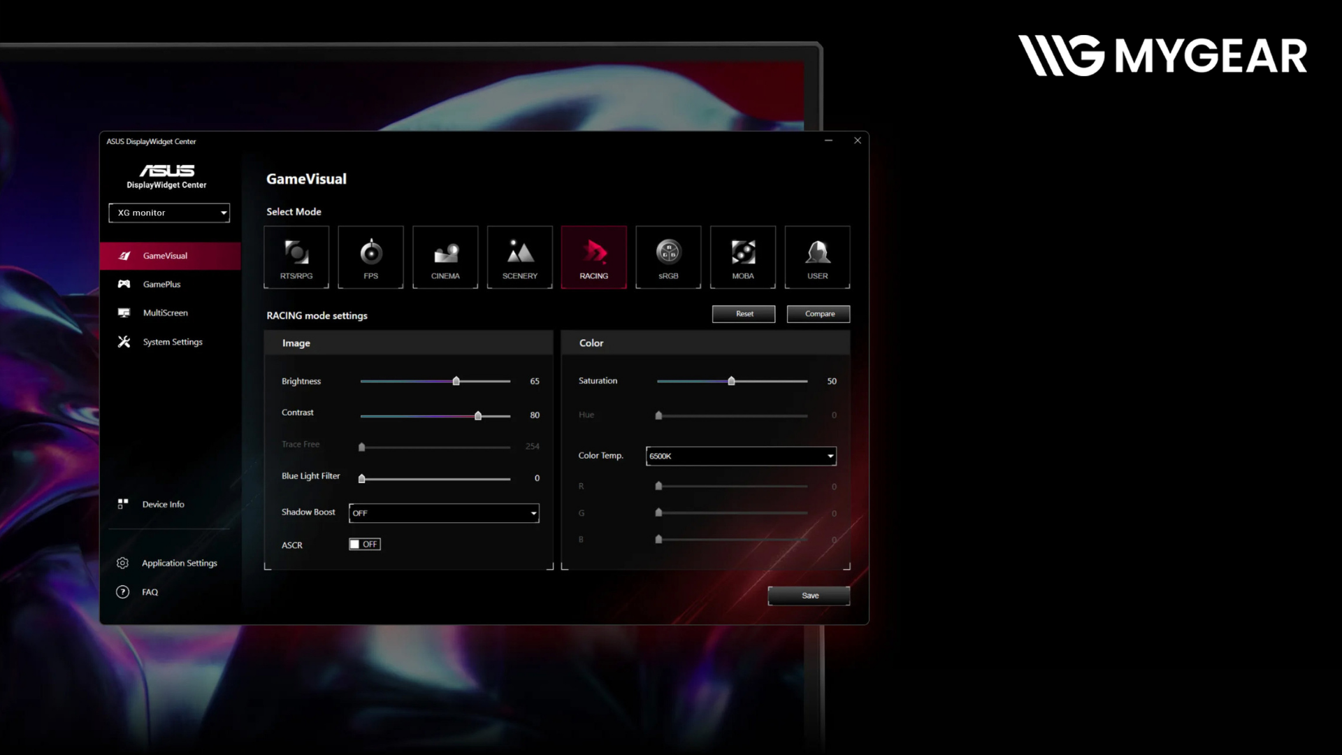 Một trong những điểm mạnh của màn hình Gaming Asus ROG Strix XG259CMS là bộ công nghệ AI Game Plus. Shadow Boost giúp làm sáng vùng tối mà không làm cháy sáng tổng thể. GameVisual và GamePlus hỗ trợ nhiều chế độ hiển thị tối ưu theo từng thể loại game. DisplayWidget Center cho phép điều chỉnh thông số màn hình trực tiếp trên Windows, giúp thao tác nhanh và tiện lợi.