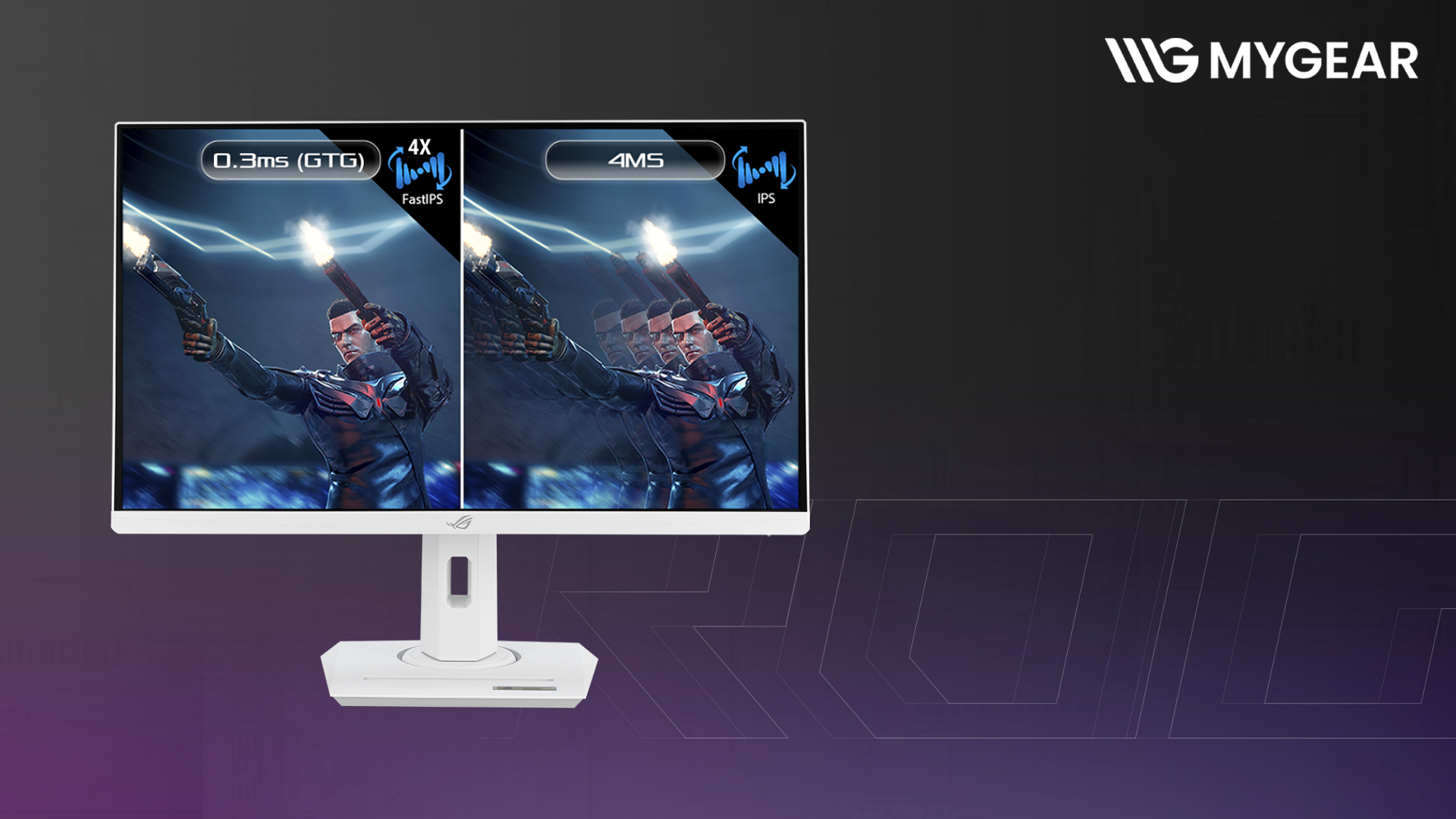Màn hình sử dụng tấm nền Fast IPS với thời gian phản hồi 1ms GtG và tối thiểu 0.3ms. Điều này giúp giảm hiện tượng bóng mờ và nhòe chuyển động, đảm bảo hình ảnh sắc nét ngay cả khi xoay góc nhìn nhanh. Kết hợp giữa Fast IPS và 380Hz, Asus ROG Strix XG259QNS-W mang lại trải nghiệm thi đấu mượt và ổn định, phù hợp với môi trường chuyên nghiệp.