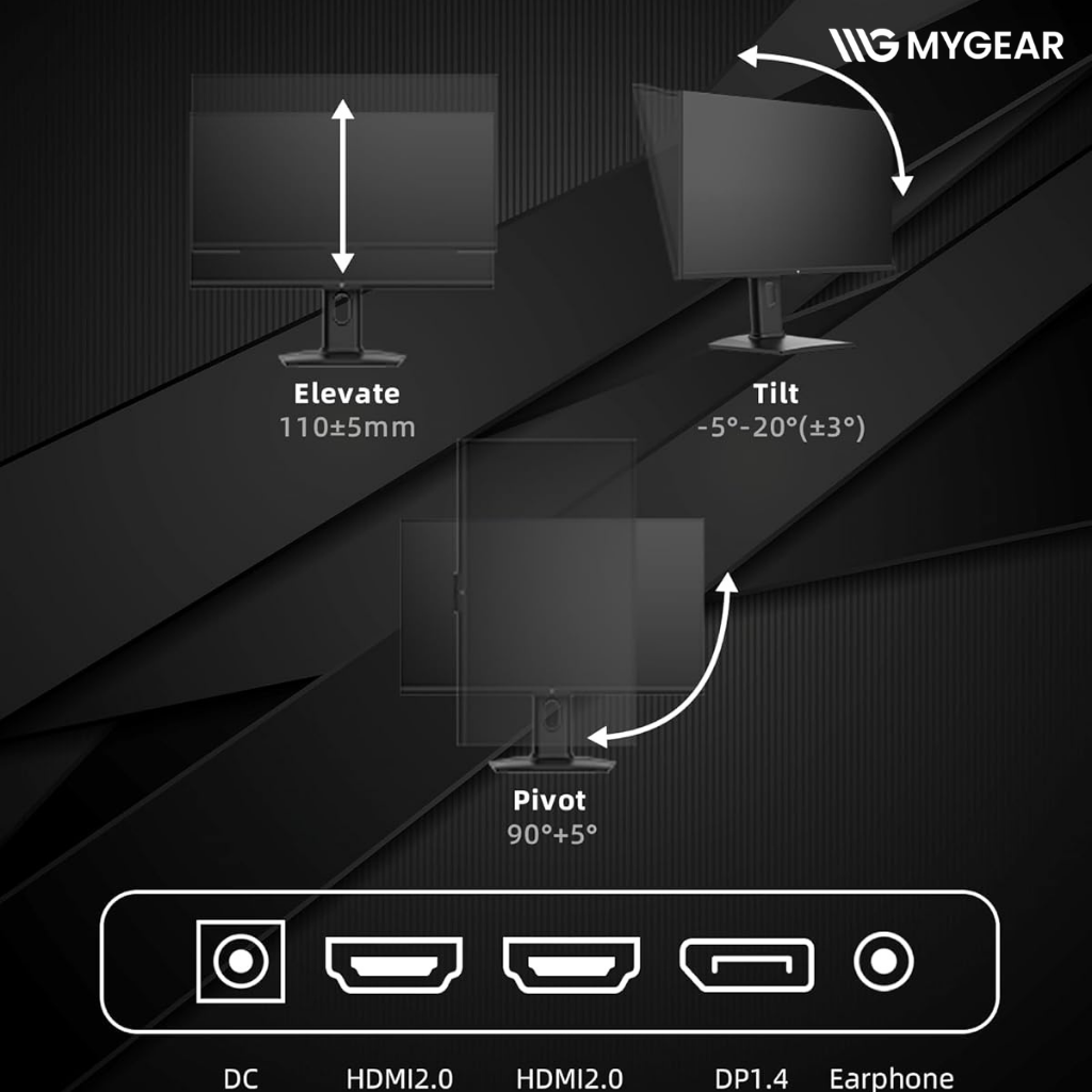 Màn hình KTC H25Y7 cho phép điều chỉnh nghiêng từ -5° đến 20°, xoay Pivot 90°, nâng hạ tối đa 110mm, giúp game thủ chọn được tư thế chơi thoải mái, giảm mỏi cổ và lưng trong các buổi chơi dài. Chuẩn VESA 100 × 100 mm hỗ trợ treo tường hoặc arm mount linh hoạt.