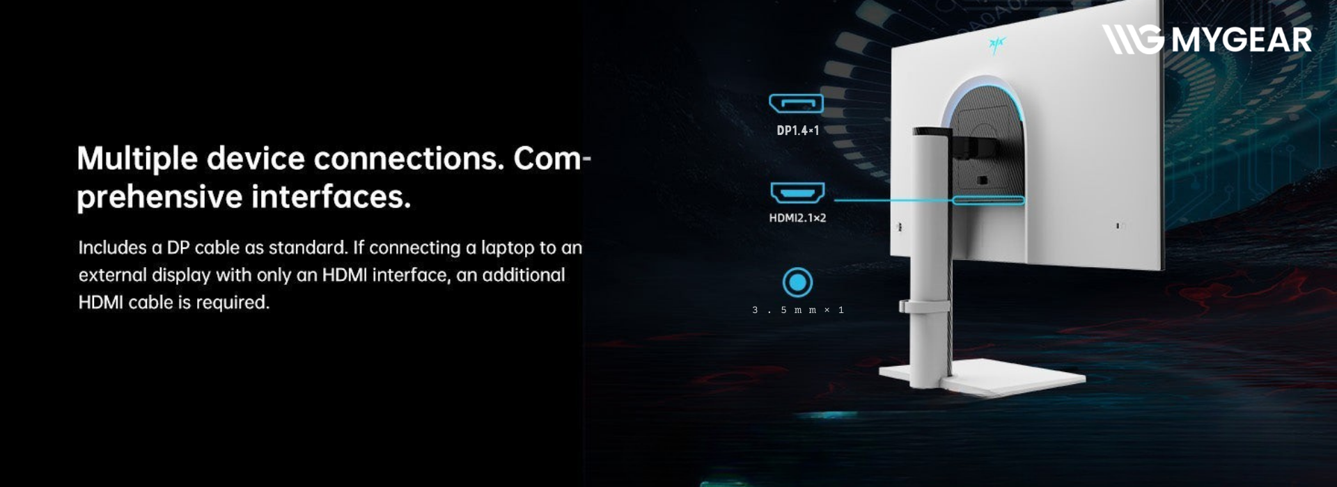 | Cổng vào | 2 × HDMI 2.1, 1 × DP 1.4, 1 × USB 2.0 |