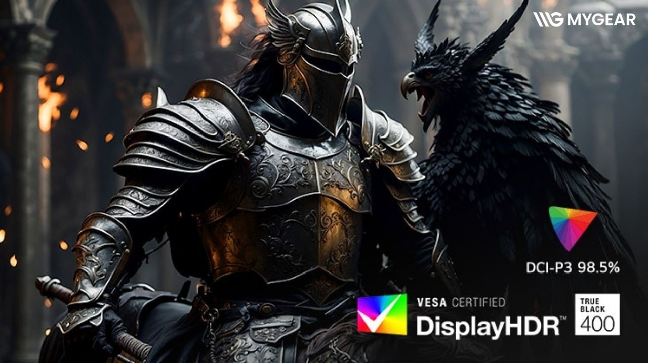 Với chuẩn VESA DisplayHDR True Black 400, màn hình Gaming LG UltraGear 39GX90SA-W tái hiện màu sắc sống động, độ sáng cao, cùng khả năng hiển thị màu đen sâu đặc trưng của OLED. Điều này giúp các cảnh tối trong game rõ ràng hơn, đồng thời làm nổi bật chi tiết trong vùng sáng rực rỡ.