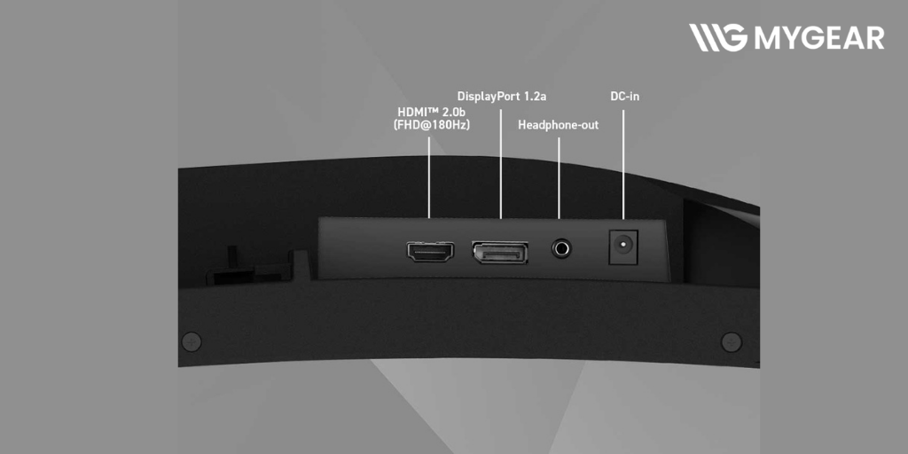 MSI MAG 244C trang bị 1× HDMI 2.0b (FHD@180Hz) và 1× DisplayPort 1.2a, dễ dàng kết nối với PC gaming, laptop, console. Ngoài ra, cổng headphone-out giúp bạn trải nghiệm âm thanh trực tiếp từ tai nghe mà không cần thiết bị trung gian.