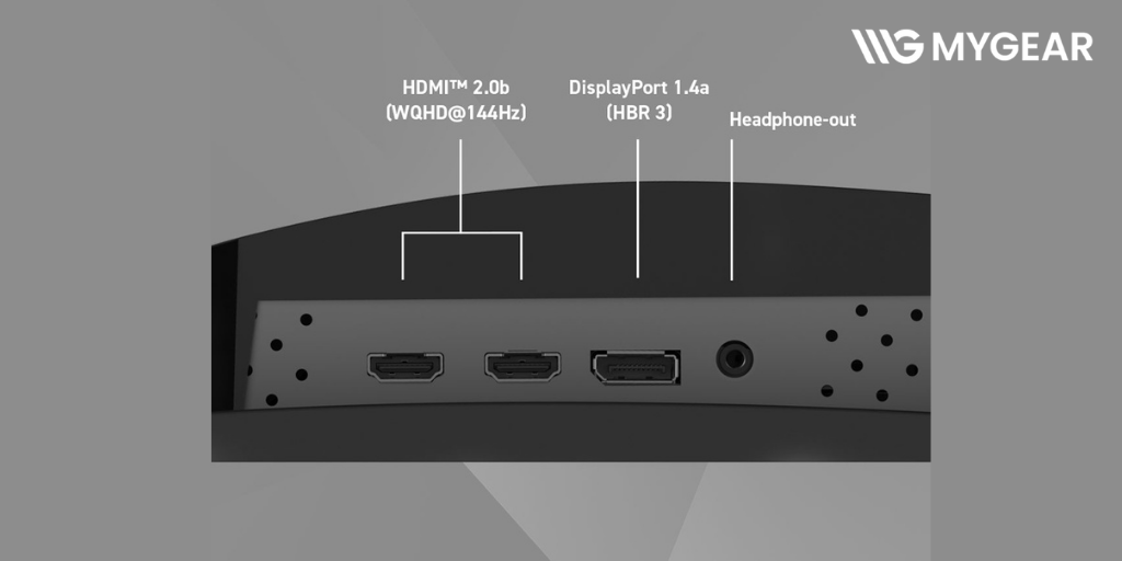 | Cổng kết nối | 2× HDMI 2.0b (144Hz), 1× DisplayPort 1.4a (180Hz), 1× Audio-out |
