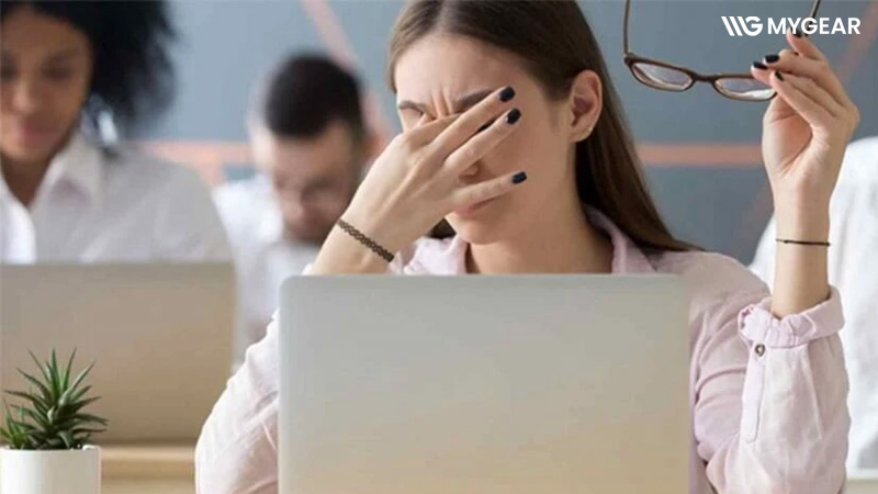 Khi màn hình laptop bị tối, người dùng thường có xu hướng nhìn gần hơn, tập trung cao độ hơn để quan sát rõ nội dung. Việc này khiến mắt ít chớp hơn, dễ bị khô, rát và chảy nước mắt.