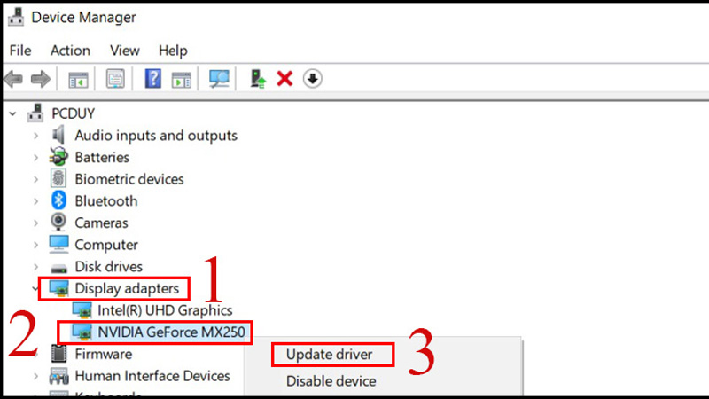 3. Cập nhật hoặc quay lại driver card màn hình (Quan trọng nhất với lỗi phần mềm)