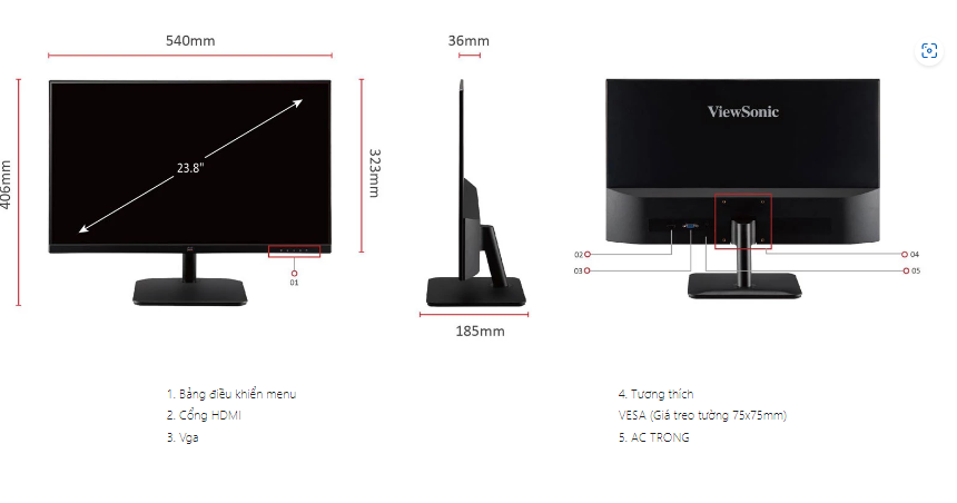 | Kích thước | 540 x 322 x 36mm (không bao gồm chân đế) |