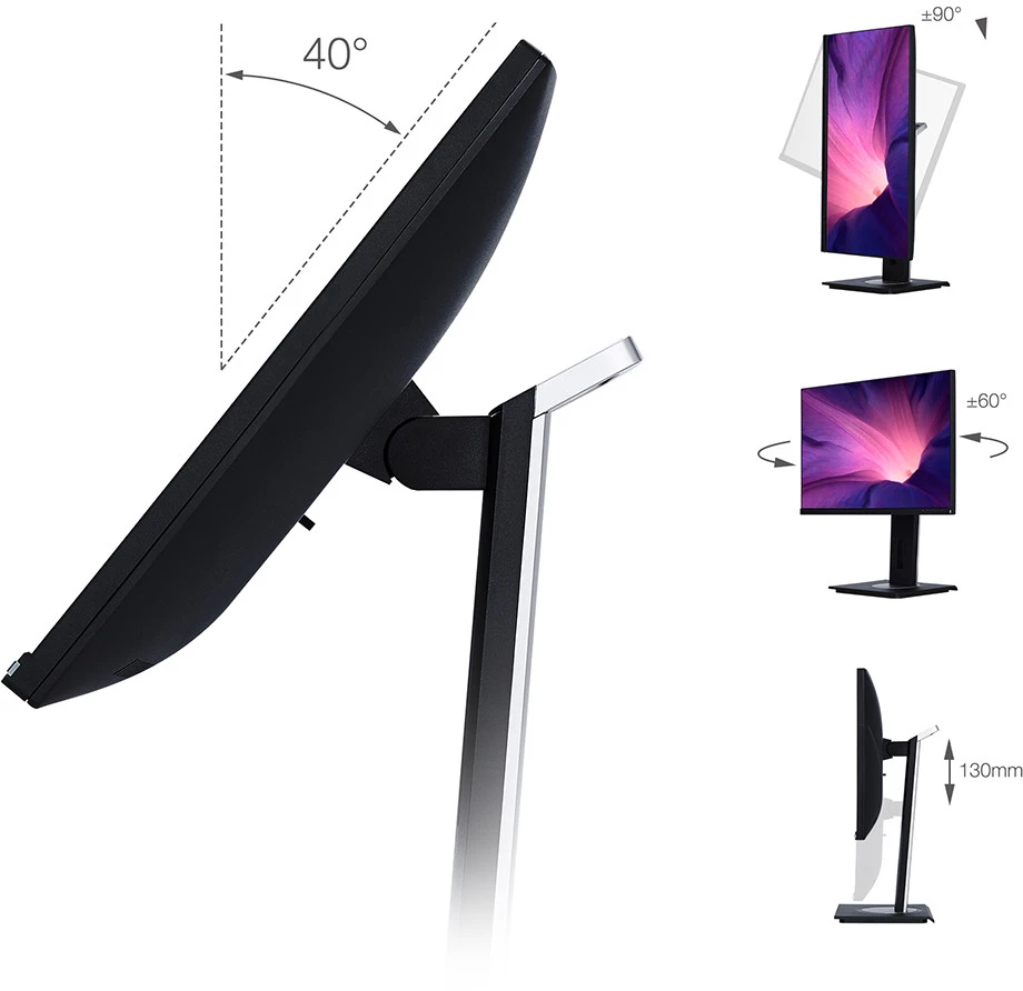 Thiết kế của VG2455 rất tinh tế và hiện đại, với viền mỏng giúp tối đa hóa không gian hiển thị. Chân đế linh hoạt giúp người dùng có thể điều chỉnh độ nghiêng, độ cao và xoay màn hình theo ý muốn, tạo sự thoải mái khi sử dụng trong thời gian dài.