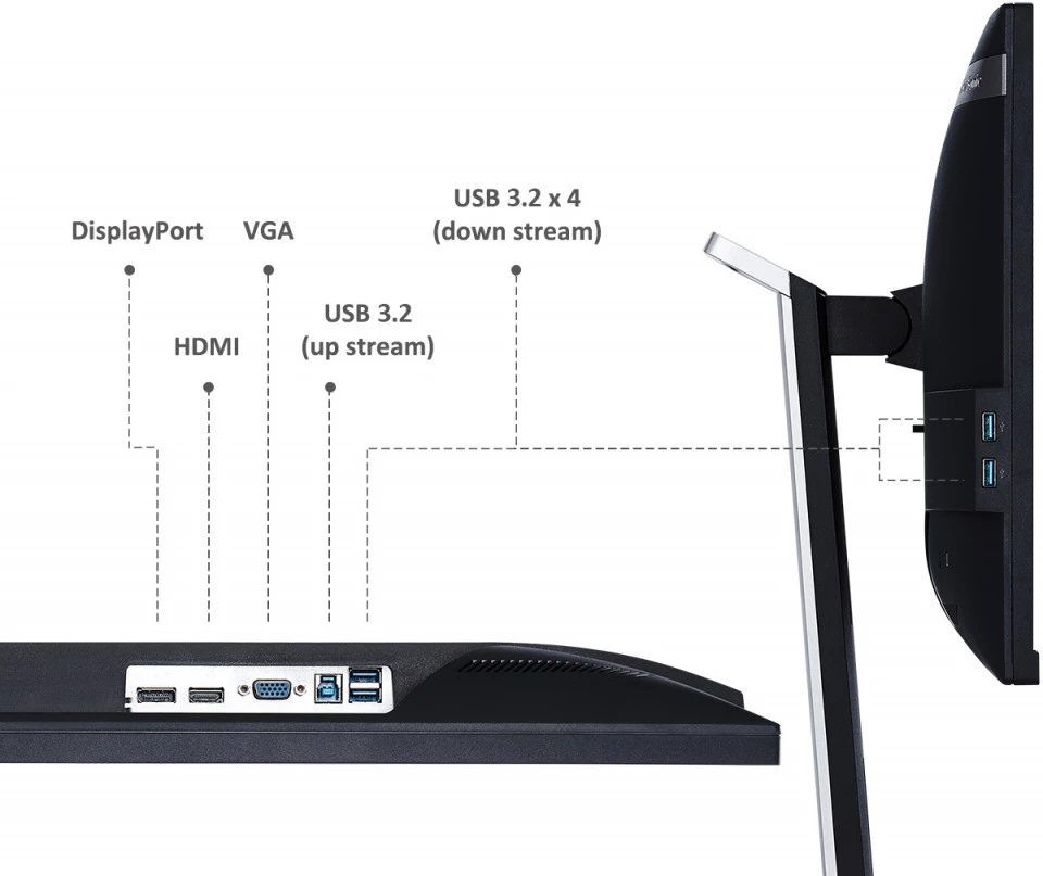 ViewSonic VG2455 được trang bị các cổng kết nối phong phú như HDMI, DisplayPort và cổng Type-C. Điều này giúp người dùng dễ dàng kết nối màn hình với nhiều thiết bị khác nhau như máy tính, laptop, điện thoại di động hay máy tính bảng.