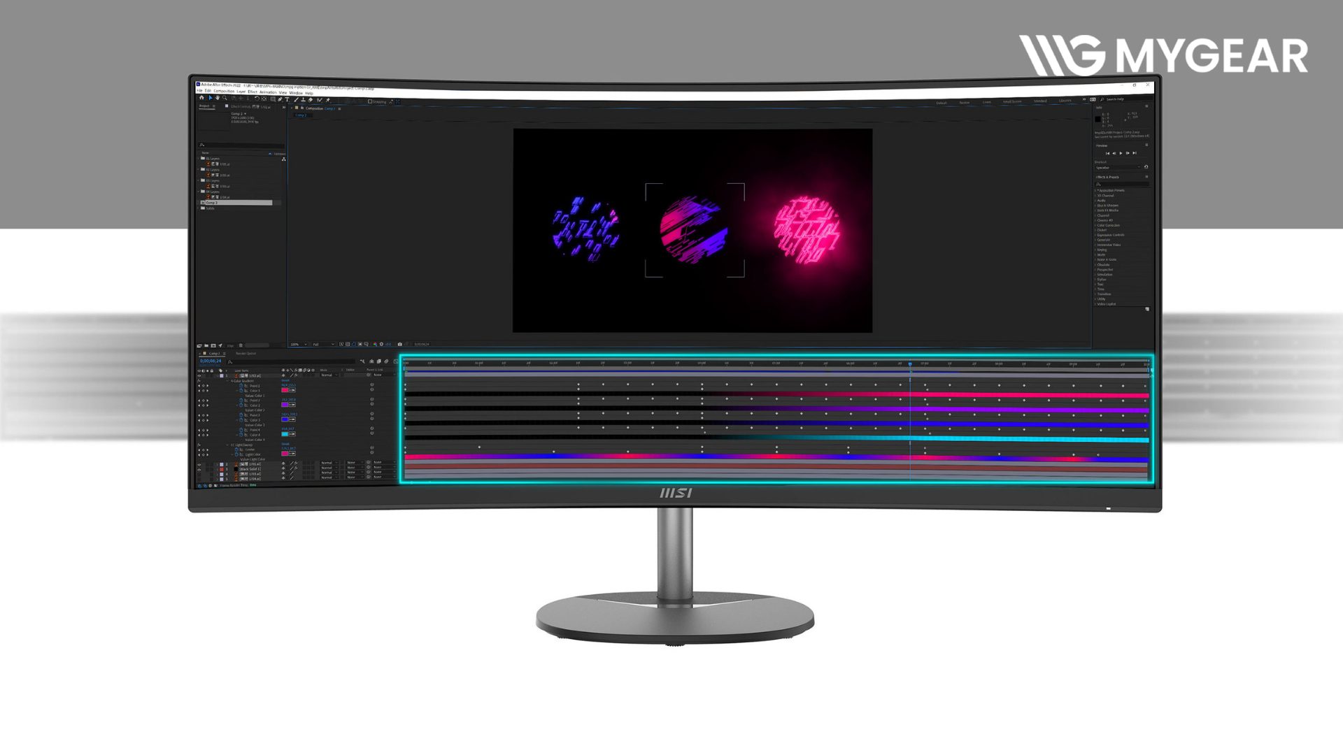Với tỉ lệ khung hình 21:9, màn hình MSI 34 inch của PRO MP341CQ đặc biệt phù hợp cho các tác vụ đa nhiệm như dựng timeline video, mở nhiều bảng tính, code song song hoặc chỉnh sửa hình ảnh trên không gian rộng.