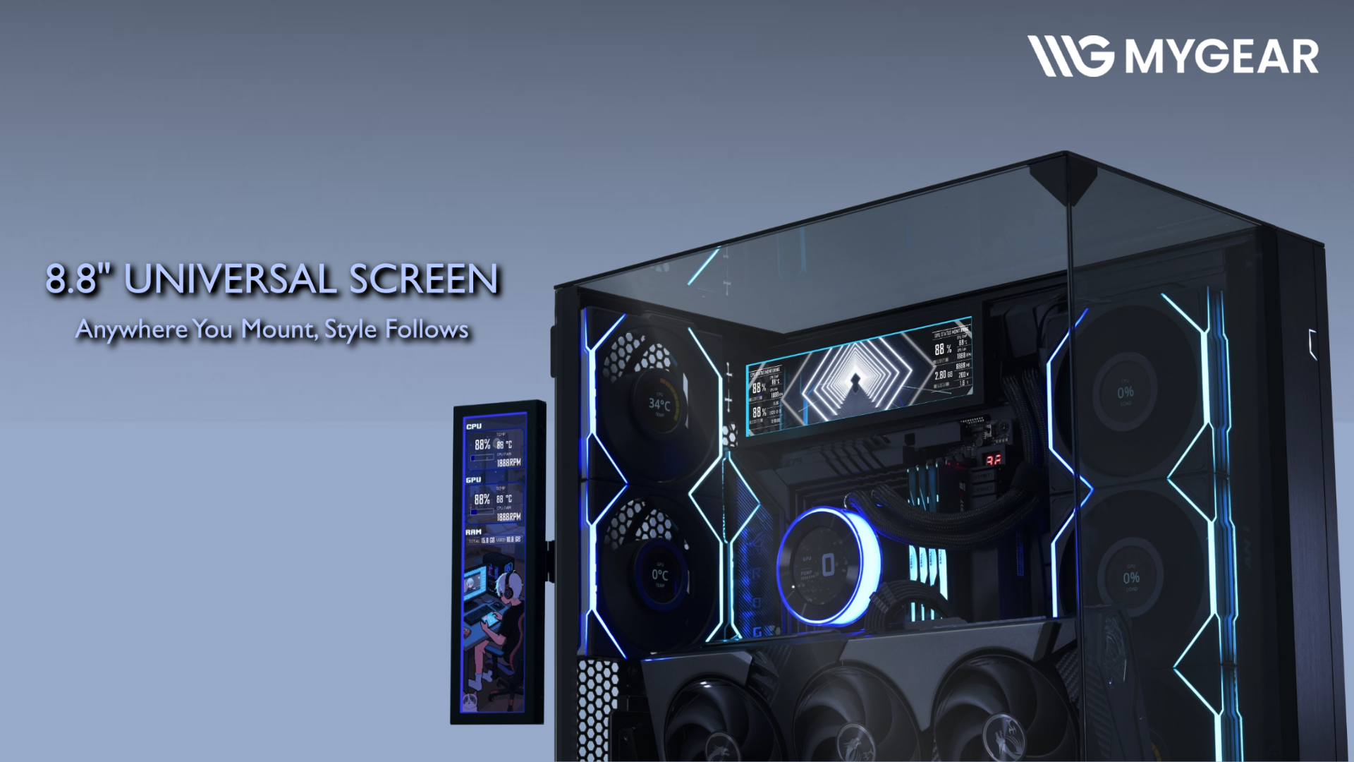Với kích thước 8.8 inch và tỷ lệ siêu ngang, màn hình giám sát hệ thống Lian Li US88v1 cho phép hiển thị đồng thời nhiều thông số quan trọng như nhiệt độ CPU, GPU, mức tải hệ thống hoặc các nội dung tùy chỉnh khác. Độ phân giải 1920 × 480 giúp hình ảnh sắc nét, rõ ràng ngay cả khi hiển thị chữ nhỏ hoặc biểu đồ theo thời gian thực.