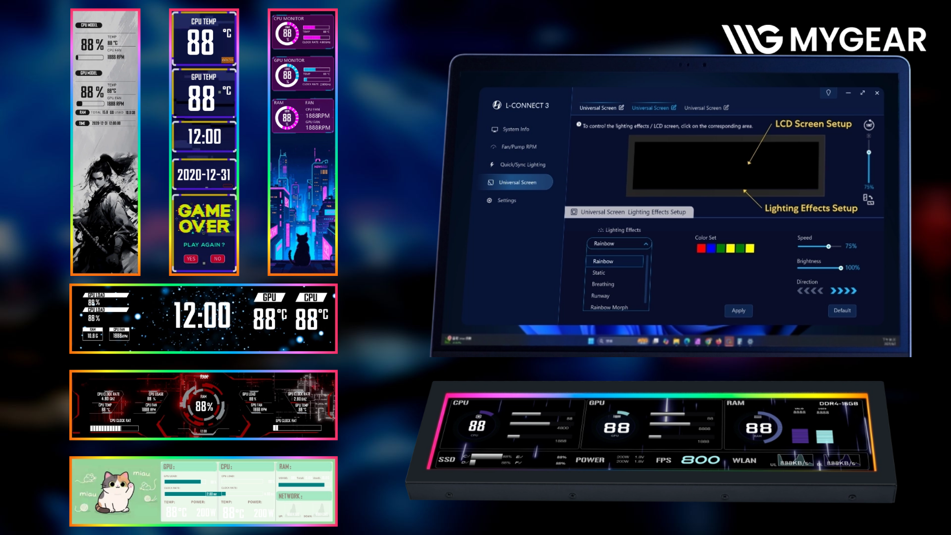 Thông qua phần mềm L-Connect 3, màn hình phụ PC trắng US88v1 hỗ trợ tối đa 6 màn hình trên cùng một hệ thống. Điều này cho phép người dùng build các bộ PC showcase cao cấp với nhiều màn hình phụ hiển thị thông tin hoặc nội dung trang trí đồng bộ.