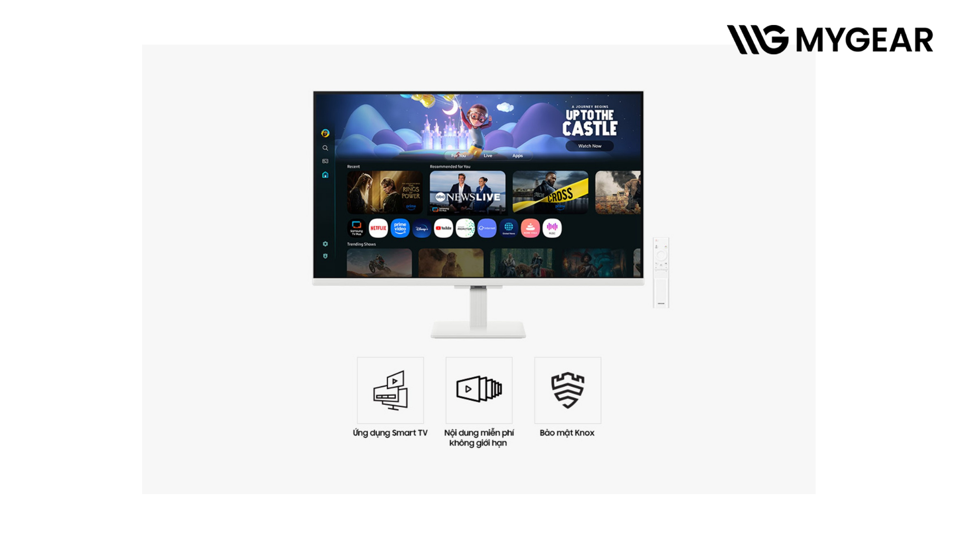 Điểm nổi bật lớn nhất của Smart Monitor M5 32 inch chính là hệ điều hành Tizen™ tích hợp sẵn. Người dùng có thể truy cập các ứng dụng Smart TV Apps, xem nội dung trực tuyến qua Samsung TV Plus hoặc sử dụng Gaming Hub mà không cần kết nối PC. Đây chính là yếu tố biến màn hình thông minh Samsung M50F LS32FM50FWEXXV thành thiết bị giải trí độc lập, tương tự một chiếc TV thông minh.
