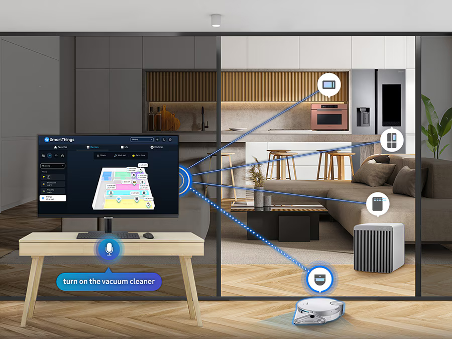 Về mặt kết nối, màn hình này cũng không làm người dùng thất vọng với nhiều cổng kết nối hiện đại như HDMI, DisplayPort và USB-C, hỗ trợ việc kết nối dễ dàng với nhiều loại thiết bị khác nhau, từ laptop đến máy chơi game. Tính năng Smart Hub cũng là điểm nhấn, cho phép bạn truy cập vào một thế giới nội dung phong phú và dễ dàng, trong khi khả năng chiếu màn hình (screen mirroring) giúp chia sẻ nội dung một cách nhanh chóng và tiện lợi.